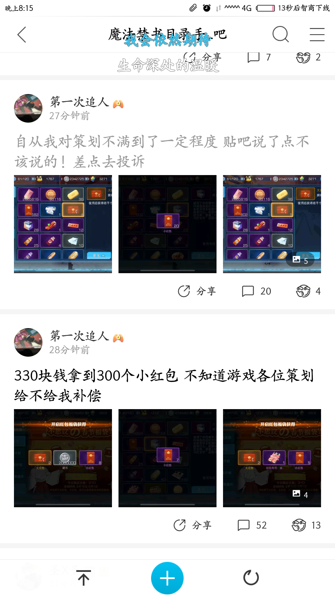 自从我对策划不满到了一定程度 贴吧说了点不该说的!差点去投诉