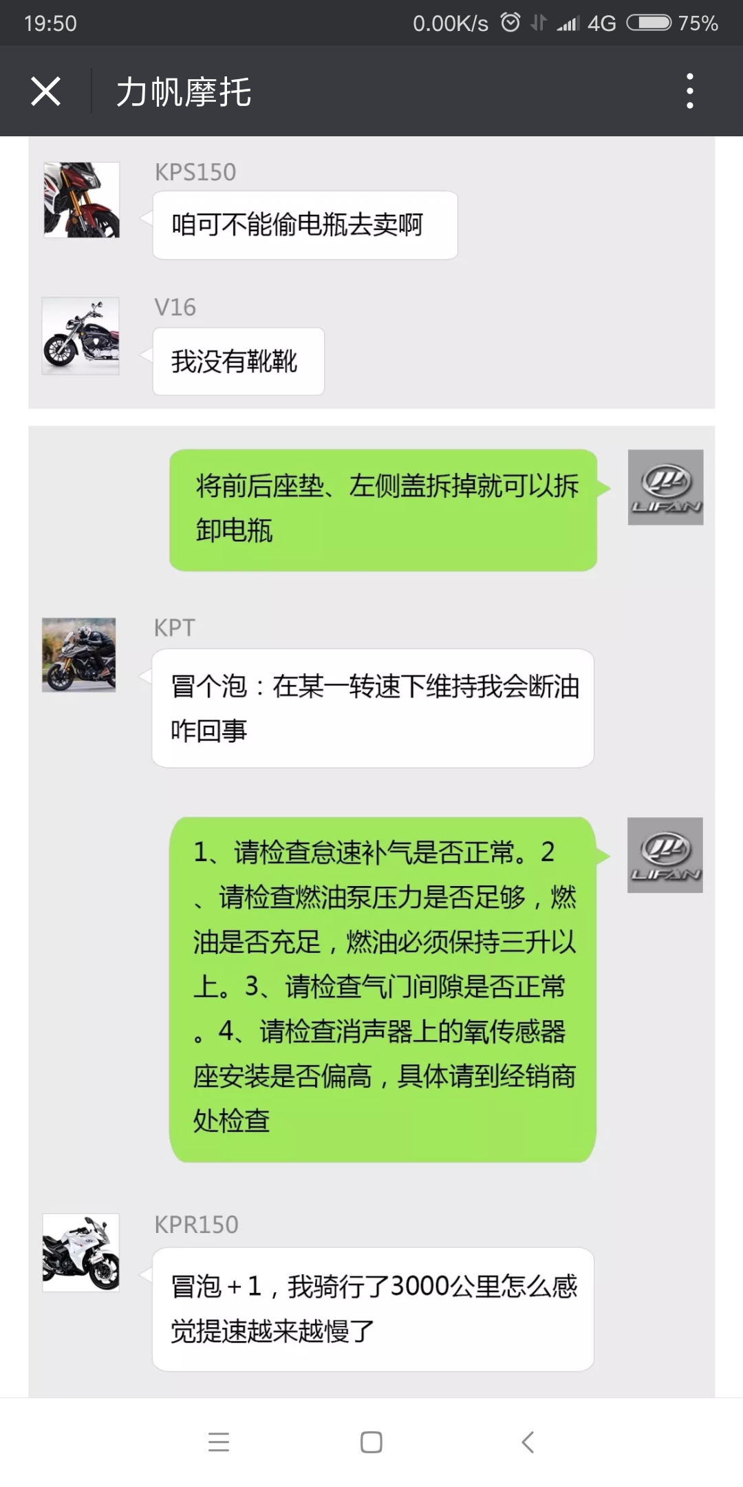 真的很急!我的力帆KPT200,最近一段时间,经常在路上突然给不上油,然后熄火,或者在等红灯时挂到空挡一段时间后,给不上油,大力给油就熄火,,当发生上述熄火时,直接打火打不着,必须把钥匙关掉,重新启动,再打火一枪就着。过一段时间又会给不上油然后熄火,,同样,需要把钥匙关掉,重新打开才能点火。已经去了我们这儿的售后了,没有故障码,用仪器检查也是无故障。人家说没办法