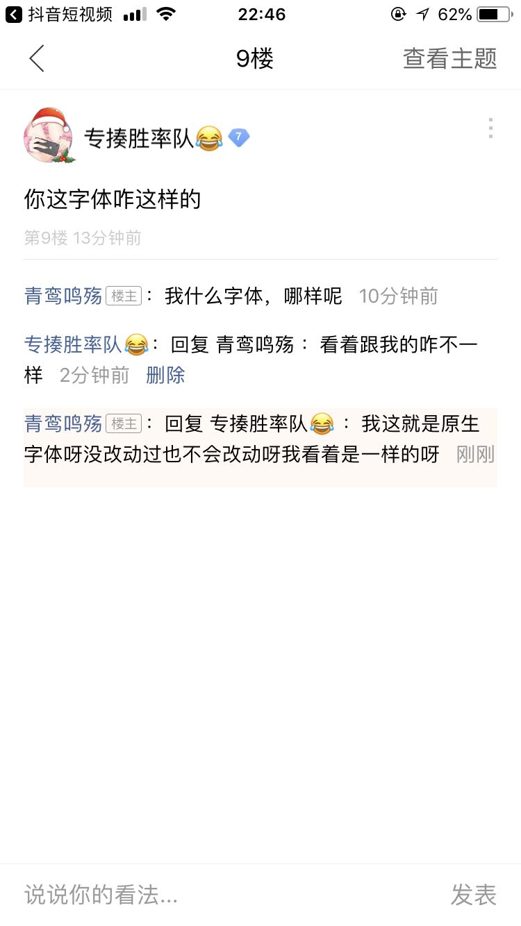回复 专揍胜率队😂 :我这就是原生字体呀没改动过也不会改动呀我看着是一样的呀