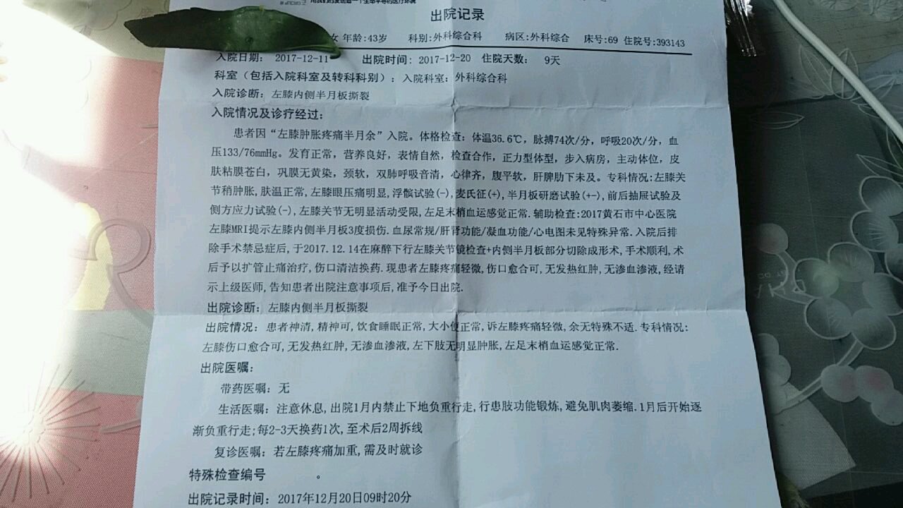 几年前的一天,刚到单位上班,我上的常白班,几个同事夜班,因为事情有些没做好,不能下班,我好心去给他们帮忙,就蹲在地上做事,直到帮他们把没做好的事情弄好,结果我在地上蹲了3个多小时,当我起身的时候,就感觉到右膝起来不舒服,但是,过一会儿又觉得还好,就没在意,想想当时要是拿个凳子坐着做事也不会落下病根,想想真悔啊。因为一开始也没经验,以为只是单纯的扭伤什么的,拖了几个月,直到我的右膝盖肿的很厉害,起身下蹲很困难,才知道了严重性。这才到医院检查,照了磁共振,给医生一看,要我做手术,吓了我一大跳,后来,找了个熟人,换了我们这儿的中医院的医生又问问,中医院的医生说,能不做手术就尽量不做手术,说我的情况可以保守治疗,我想想,也问了两家医院了,那就保守治疗吧,在中医院还可以结合中医一起治疗,应该要好些,就这样,这次住院用了一个多星期,打针,消炎,抽积水,打玻璃酸钠,中药药敷。一个抽了4次积水,4针玻璃酸钠,一星期一次,两次是住院期间,剩下的两次是出院以后再去的,出院后还在家药敷了半个月,把中药煮开,把伤了的膝盖放在煮药的容器上,再在膝盖上拿个大毛巾盖住,是为了让药冷的慢些,把膝盖多蒸一下。这次右膝盖保守治疗的方法如上所诉,效果还是不错的,有3,4年了,没有再发,期间,就再也没有,爬山,打羽毛球了。