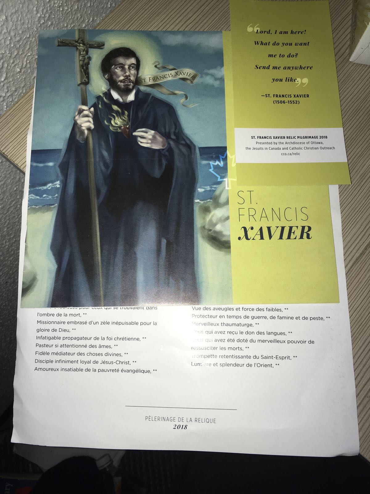 这个是由渥太华总教区,耶稣会和圣座主办的圣方济各沙勿略的圣骺巡回朝圣,圣骺是其前臂骸骨,原本存放于罗马耶稣会总部的耶稣教堂,二月初来到蒙特利尔做瞻仰,最后运往渥太华