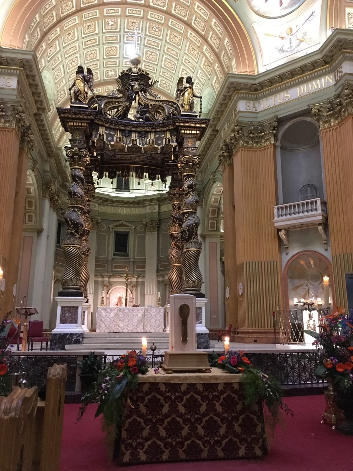 第一天是由蒙特利尔总主教亲自做弥撒欢迎圣骺到来,教堂是蒙特利尔圣母世界之后主教座堂圣殿,有幸近距离得见,之后前往蒙特利尔的耶稣教堂供奉半天,并且还发了介绍圣人和圣骺的小册子和祈祷文