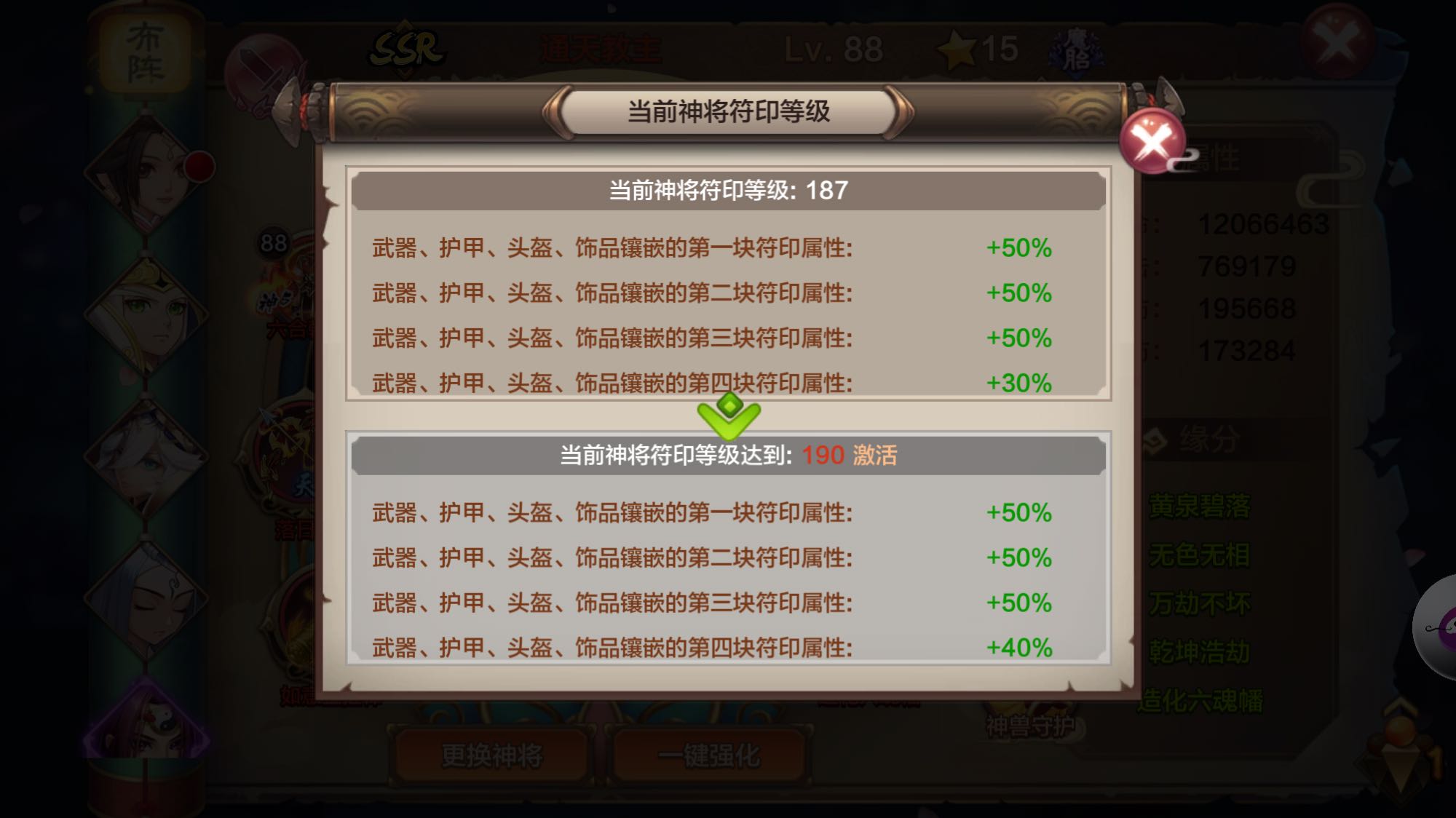 我来说两句吧,0破击的通天他打200格挡的东皇,也不是百分百触发格挡。游戏对立属性之间没有绝对抵消,他有一个最低值和一个最高值,分别是百分之20和百分之80。其次如何计算属性之间的百分比根据神格来看。但凡是60的属性都需要是40属性的1.5倍才可以将触发概率降到这个最低百分之20值。比如通天300暴击 你必须让抗暴到了450才能使抗暴几率达到最低峰20,而不是百分百抗暴。相反你400暴击我0抗暴无非是让他的触发暴击几率升到了百分之80而不是百分百暴击。还有就是20-80之间数据怎么算?每提升50的相对属性就会提升百分之10的几率。比如通天300暴击,东皇300抗暴,那么暴击几率是百分之80-30等于50。然后格挡,命中一类的道理相同,可以自己去计算。我建议一个队伍里面2闪避2格挡1暴击1抗暴神格 这样符印法宝神兽都能进可能得最大化分配属性。别一看啊,这个版本流行格挡抗暴流就全格挡把以前自己的闪避也转成格挡~没意义,傻子。你转成格挡抗暴,人家符印把命中换成破击不就是了,法宝人家转换麻烦,就跟你把闪避转换格挡不麻烦似的~ 通天的觉7技能注定了这个神将的无需替换性,你只要阵容好好的给他创造环境,他就给你一个视觉冲击。