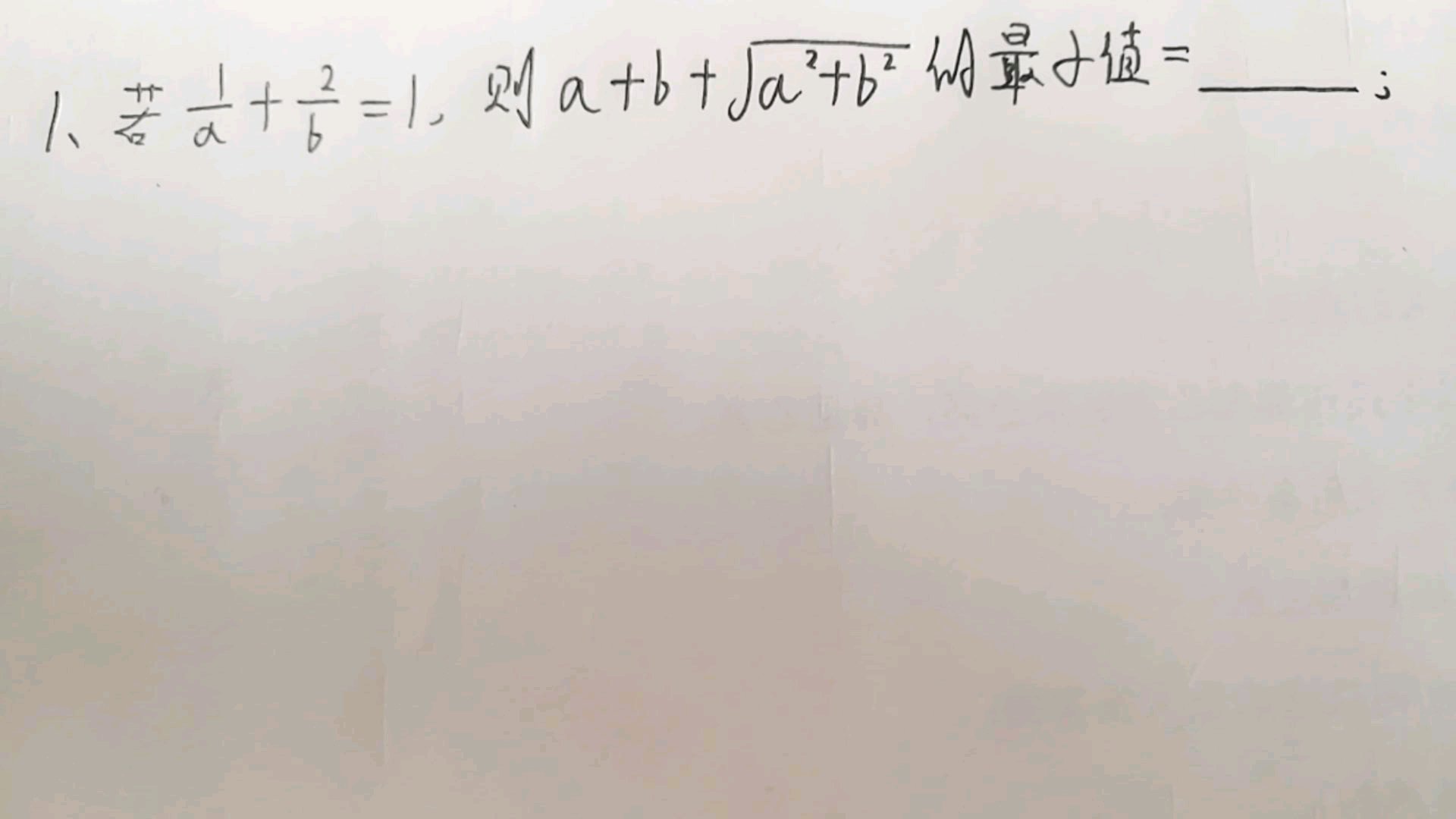 那条件怕不是变成a分之一加b分之一等于某个值,然后套调和平均小于等于几何平均小于等于算术平均小于等于平方平均还行?