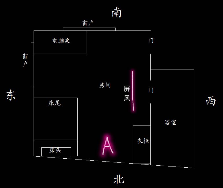 请问大师们,厕所可不可以用屏风挡一下吗?电脑桌可以搬走A的位置,或者有什么办法可以化解或改善一下,请多多指教。谢谢大家了!