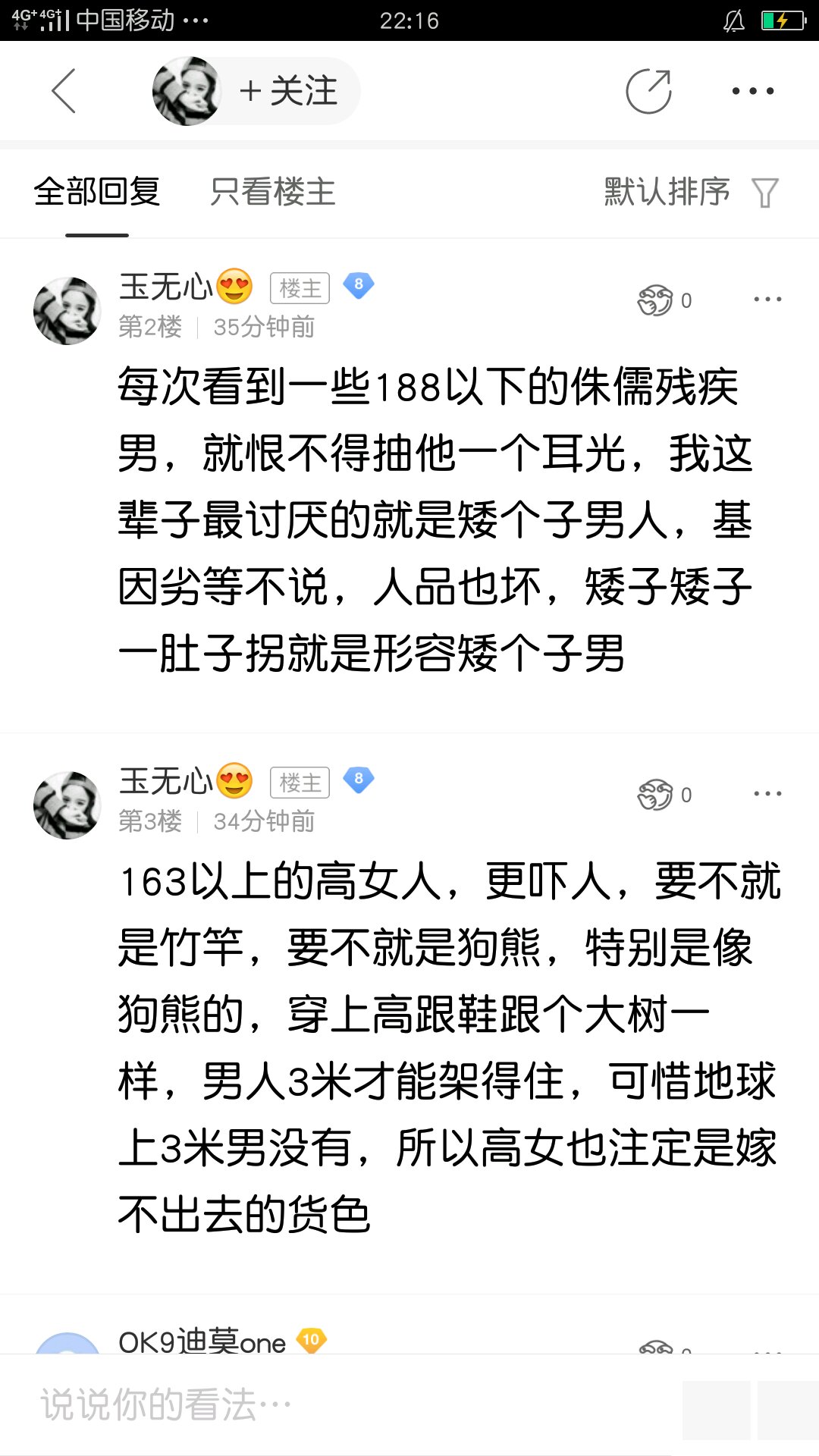 ,其中一个发出过广州男平均190的智 障言论。笑笑就好