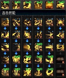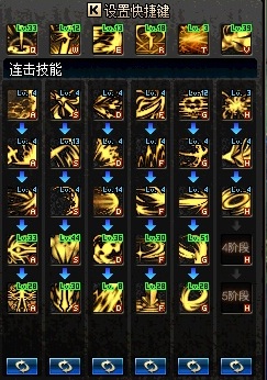 第一列是“跃进”,第二列是“突进”,第三列是“击退”+“扫地”+“粘滞压制”,第四列是“击倒”+“扫地”+“压制起身”,第五列“僵滞”+“吸怪”,都是为了使各自列末的五阶技能完整打全伤害组合起来的,并不是纯粹为了减CD和增加排列位而组合的。