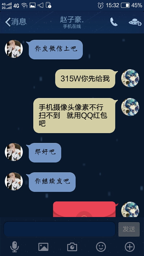 我也知道大家对骗子的痛恨,但也别带上骗子的家人等等,毕竟骗子该死,他家人是无辜的,又不是他家人让他去行骗的。诅咒骗子被车撞就行了,咒骗子死倒不至于,有罪,但罪不该死,在医院里痛苦一段时间就够了。在聊天记录里,我有提到骗子棺材板的事情,倒也不是我咒骗子死,而是人必有一死,骗子也是,总有气数全尽的时候,到时候我那五块钱就用得上了。