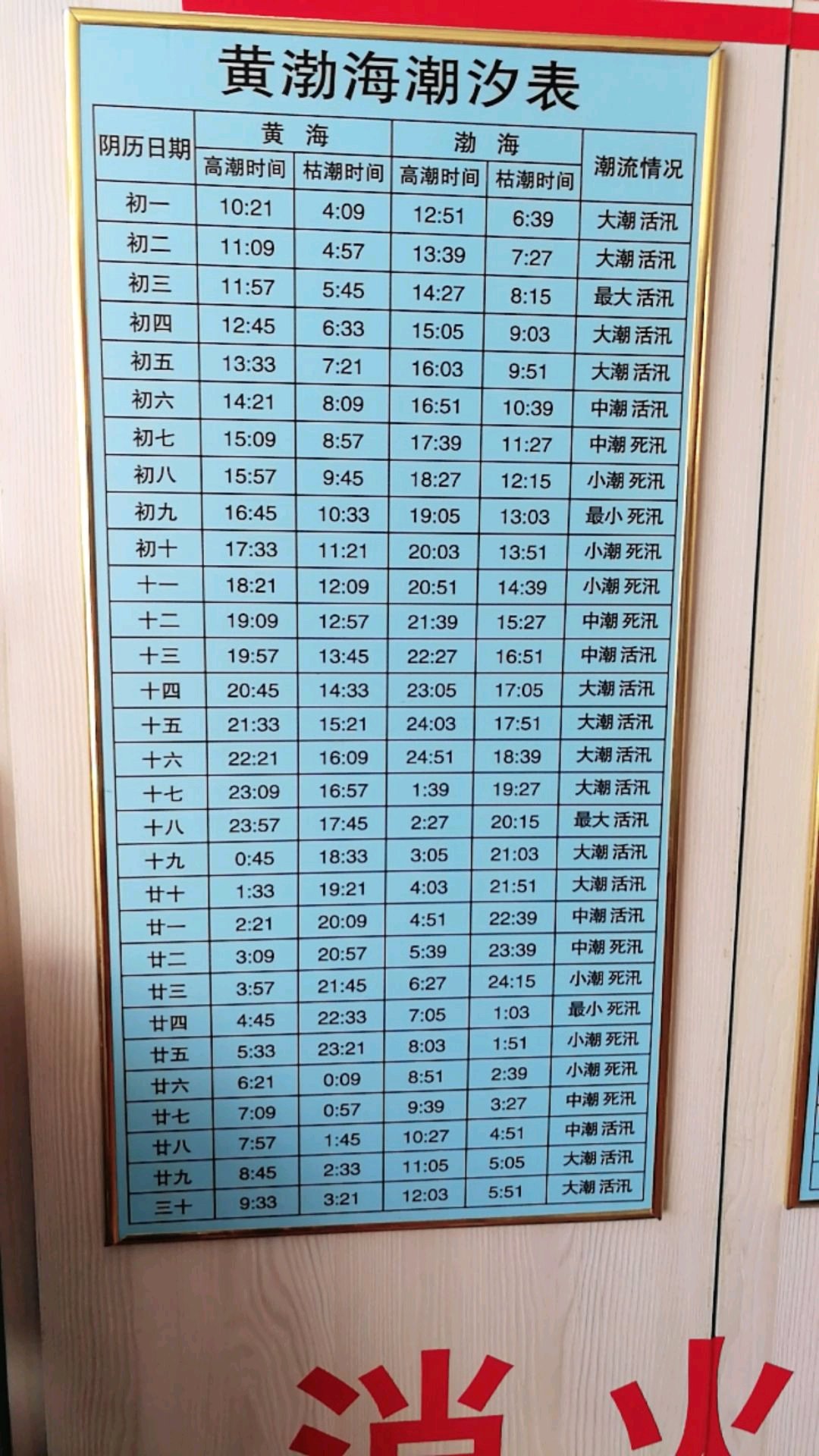 大连地区潮汐表