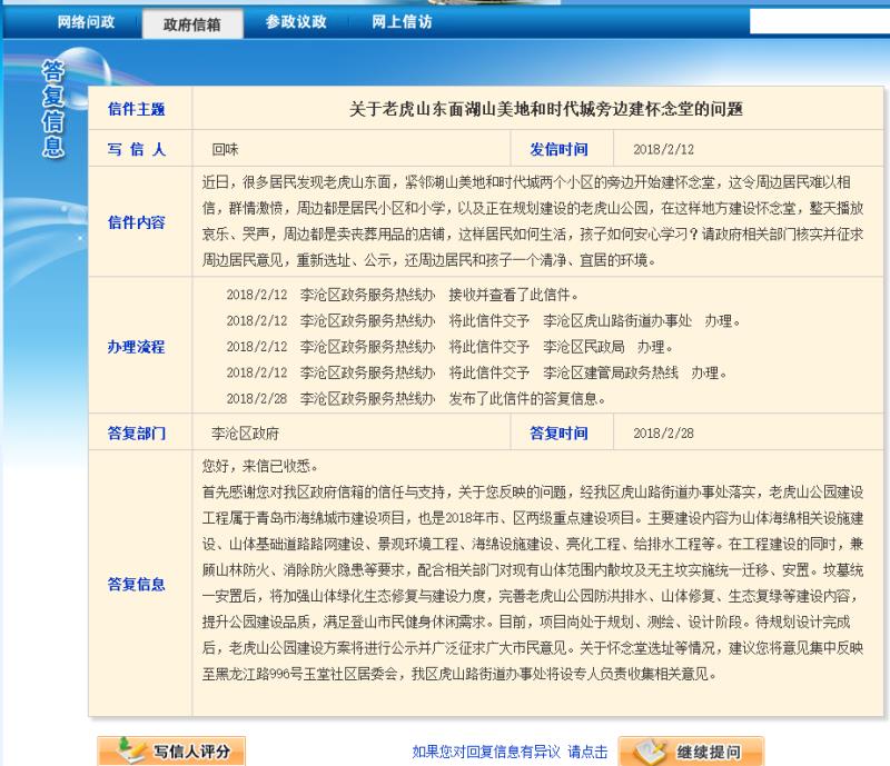 不尊重周围小区数万居民的反对意见,强推墓地建设,措辞牵强,不顾民意。这与绿色青岛以及最新山东省发展规划相驳,如何为青岛建设吸引更多的人才流入,就是这么对待新青岛人的吗?