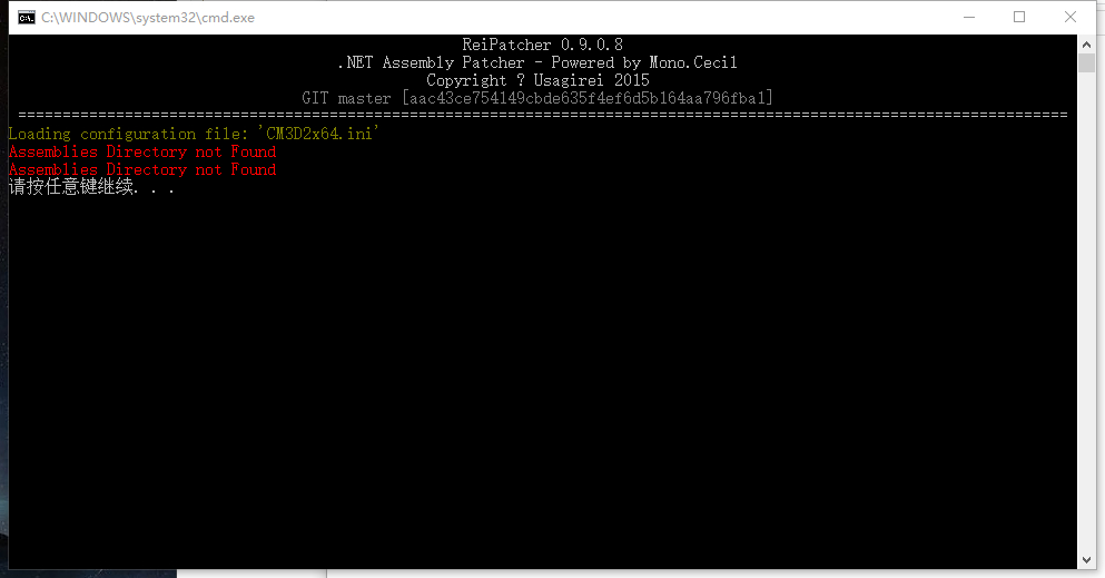 第四步:執行ReiPatcher內的__Patch x64.bat檔案,會正常執行CMD並自動開啟遊戲,確定能正常進入後,關閉遊戲。