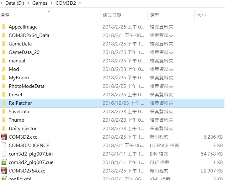 先把ReiPatcher整個資料夾,丟進你的遊戲根目錄。