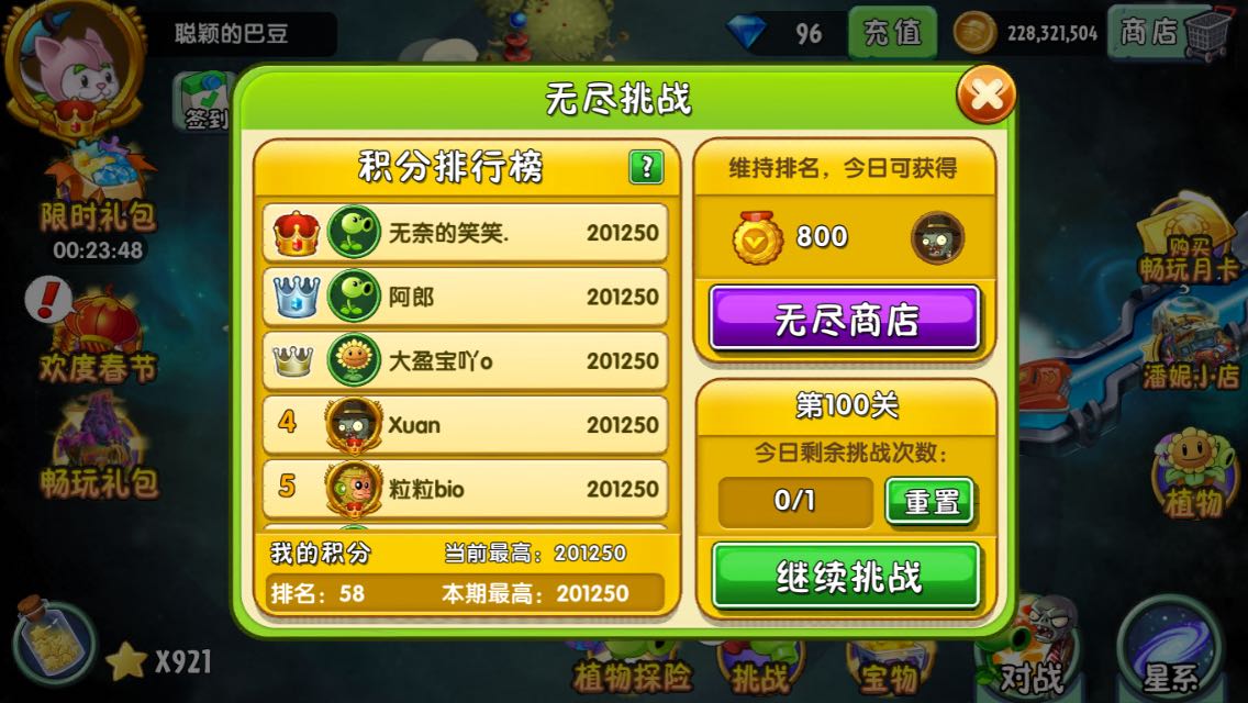 最后一次修仙了,要去上学了。这次很多大佬都没有打无尽。侥幸拿了第10却也一波三折折。刚开始复阵成功,boss关运气不错,都是+1+2。打到66是第10,在67关被落叶大佬反超,落叶大佬没有复阵打的,可怕。打到70关左右,前面有个大佬非法了,我变成第10,我然后在70多关的时候有一关被破阵导致,重打,结果时间到了怪没出完,然后浪费了30秒到了第11。后来一直完美卡时间(甜薯聚完先吹一路,然后剩5秒的时候切进植物游戏里,继续,甘蓝吹一路,刚刚没有非法),最后成功在92看排名时反超到了第10。最后3点58分完成,比第9的落叶大佬慢了6分钟。一切的改变都是从遇到37开始![[滑稽]](/static/emoticons/u6ed1u7a3d.png)