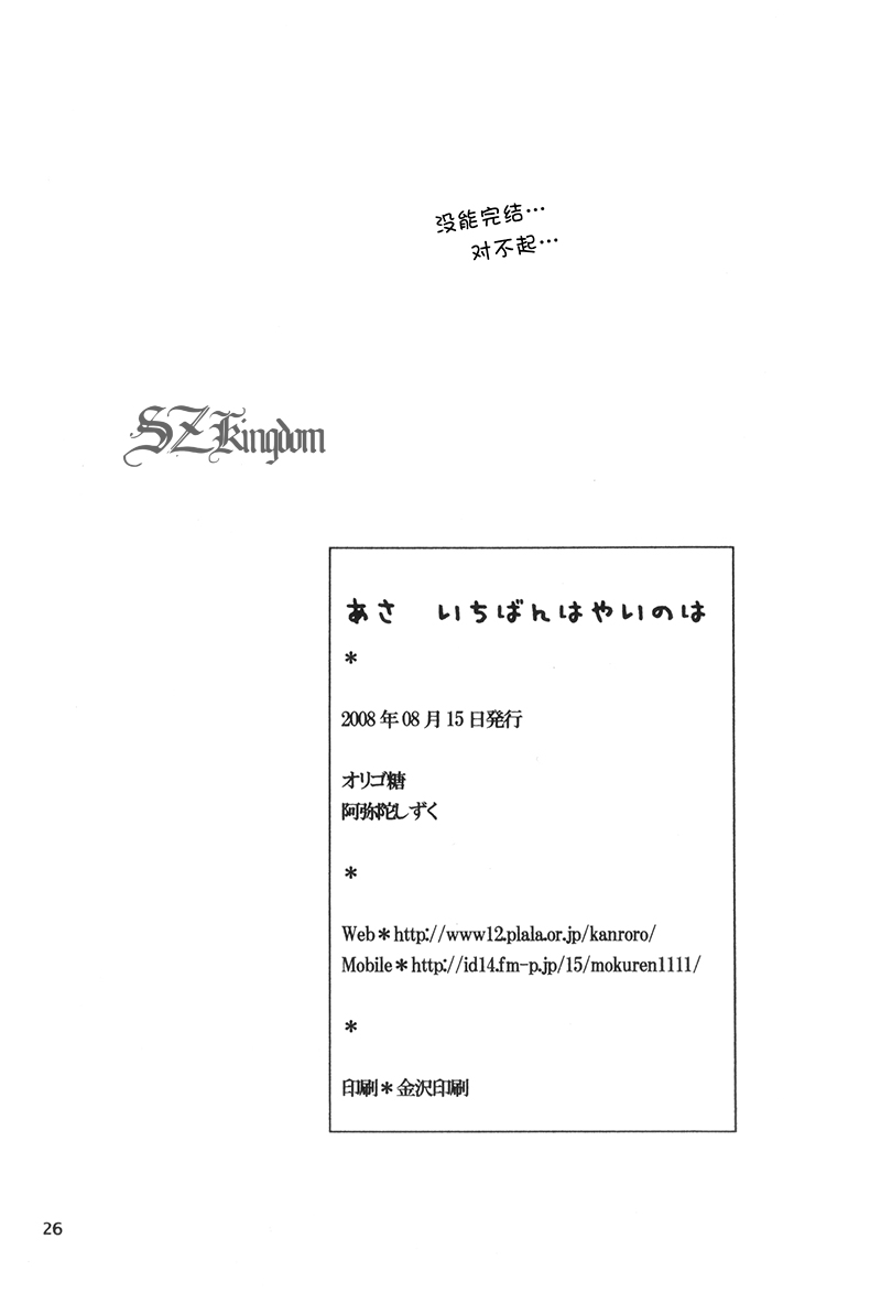 汉化组所采用的同人作品均来源于非禁止扫描上传的实体书或有授权的发表作品,版权归原作者及出版社所有,汉化成品只作试看、学习用途,不代表汉化组的观点,本汉化组也不承担其侵权行为的连带责任。请于24小时内自行删除,书得拿在手上才好哦。
