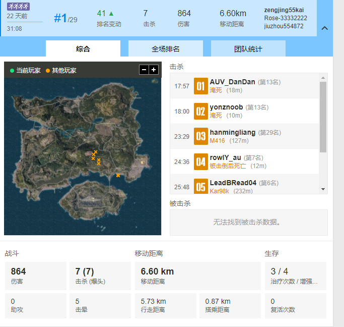 最后他队友的战绩