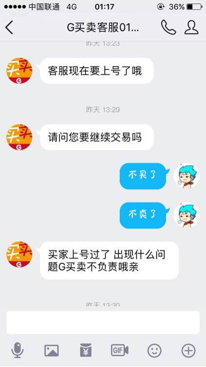 之后,假客服就一直催我赶快给他发手机验证码,还一直以不发就立马结束交易为由,唉,成功利用了卖家着急的心态,好吧,我给他了,之后越想越不对劲,继续问了群友,看了gmm的交易流程才确定真的被骗了