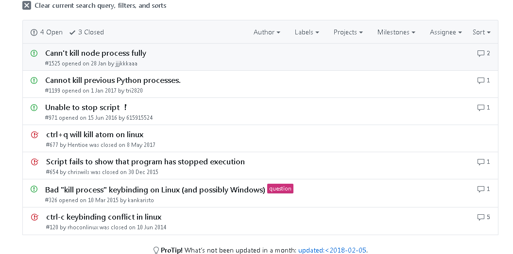我在atom也没有找到方法,最后用终端可以关闭服务 pkill node 或者 killall node