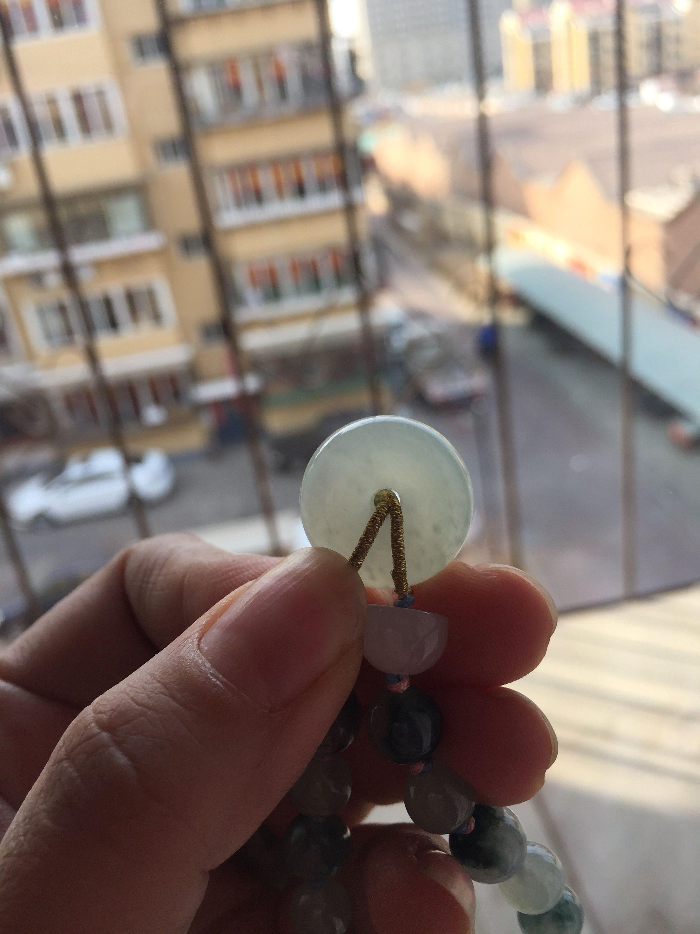新年第一帖出一平安扣!材质翡翠!有证书!糯冰种吧里面有雪花棉!尺寸18*8 没有颗粒感!水头不错!500来的!大刀400bby!