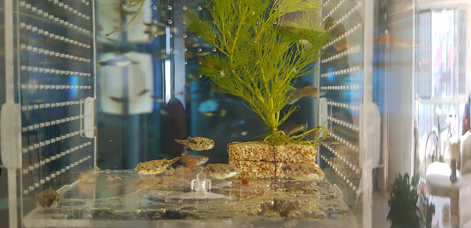 新进小斑马狗头1.5-2CM,第一次遇到这么小的,太萌了,希望能好好的长大,别打架。#(汗) 长大了就可以进大缸里玩去啦。