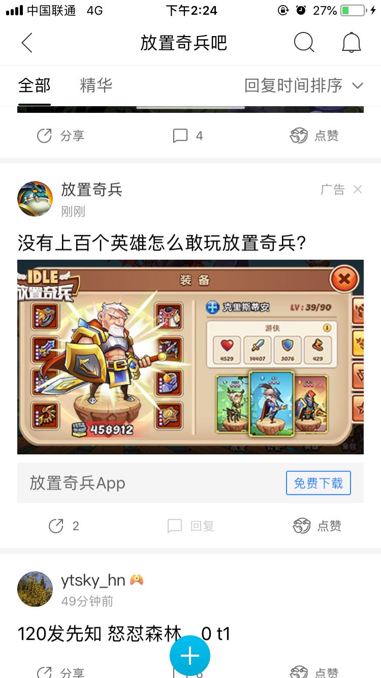 逛贴吧总是碰到放置奇兵的奇葩广告,一直在截图,索性开一贴汇总一下,以后看到新广告会持续更新,欢迎小伙伴们吐槽
