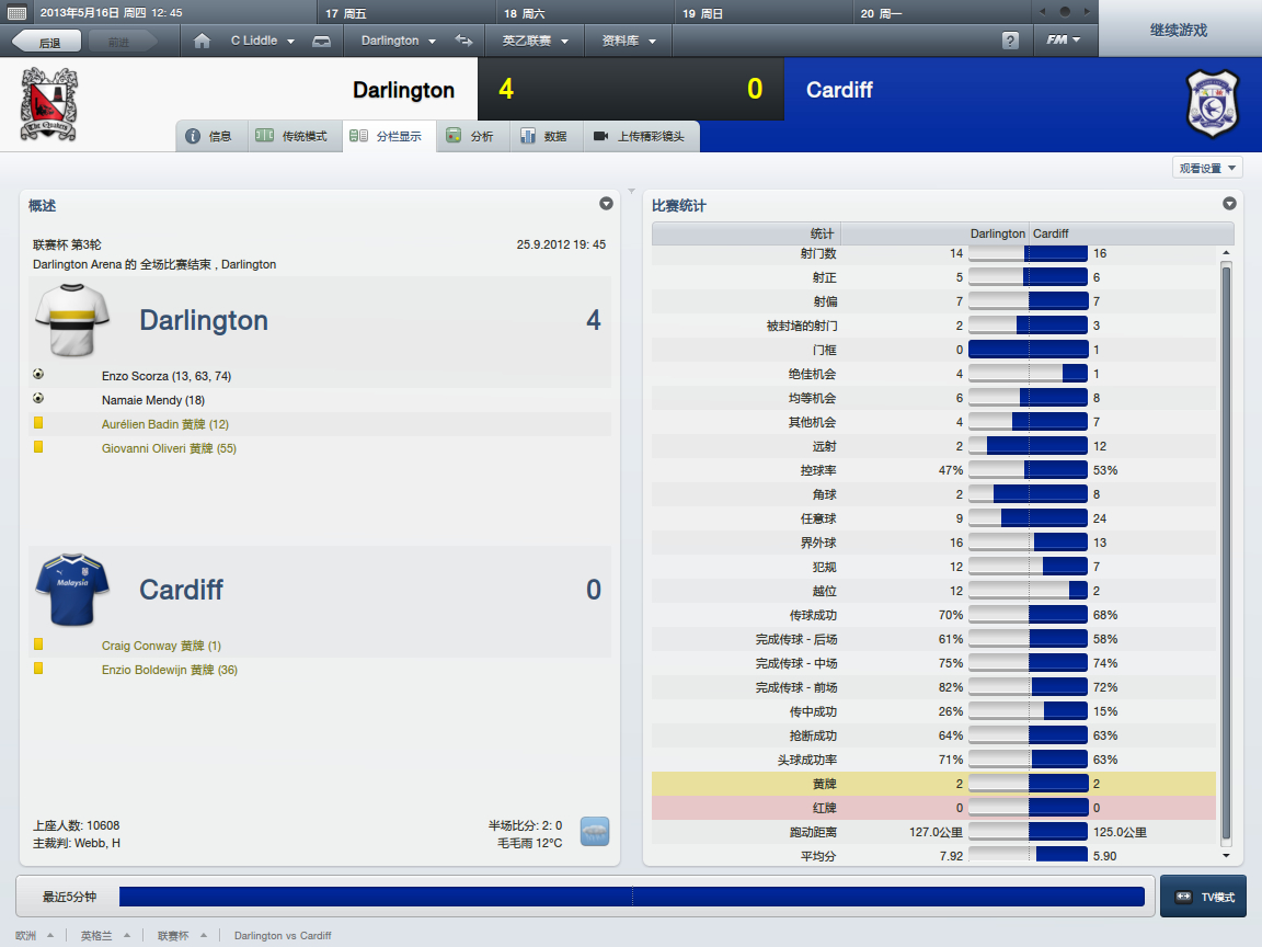 联赛杯第三轮,加迪夫