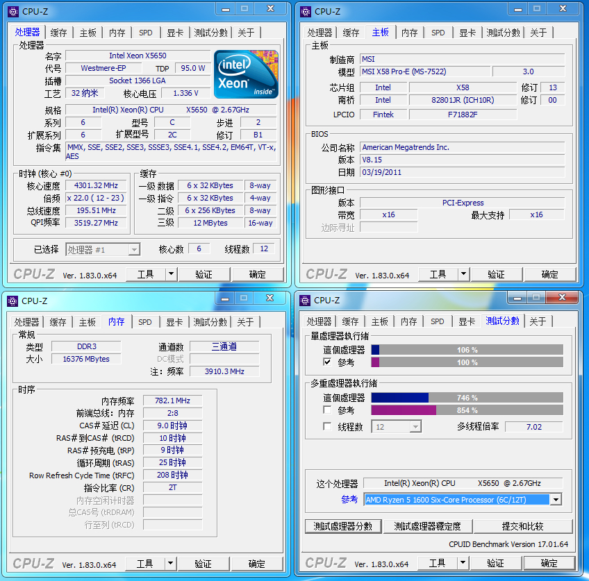 可以看到超到3.9Ghz的x5650还是非常的强劲哈