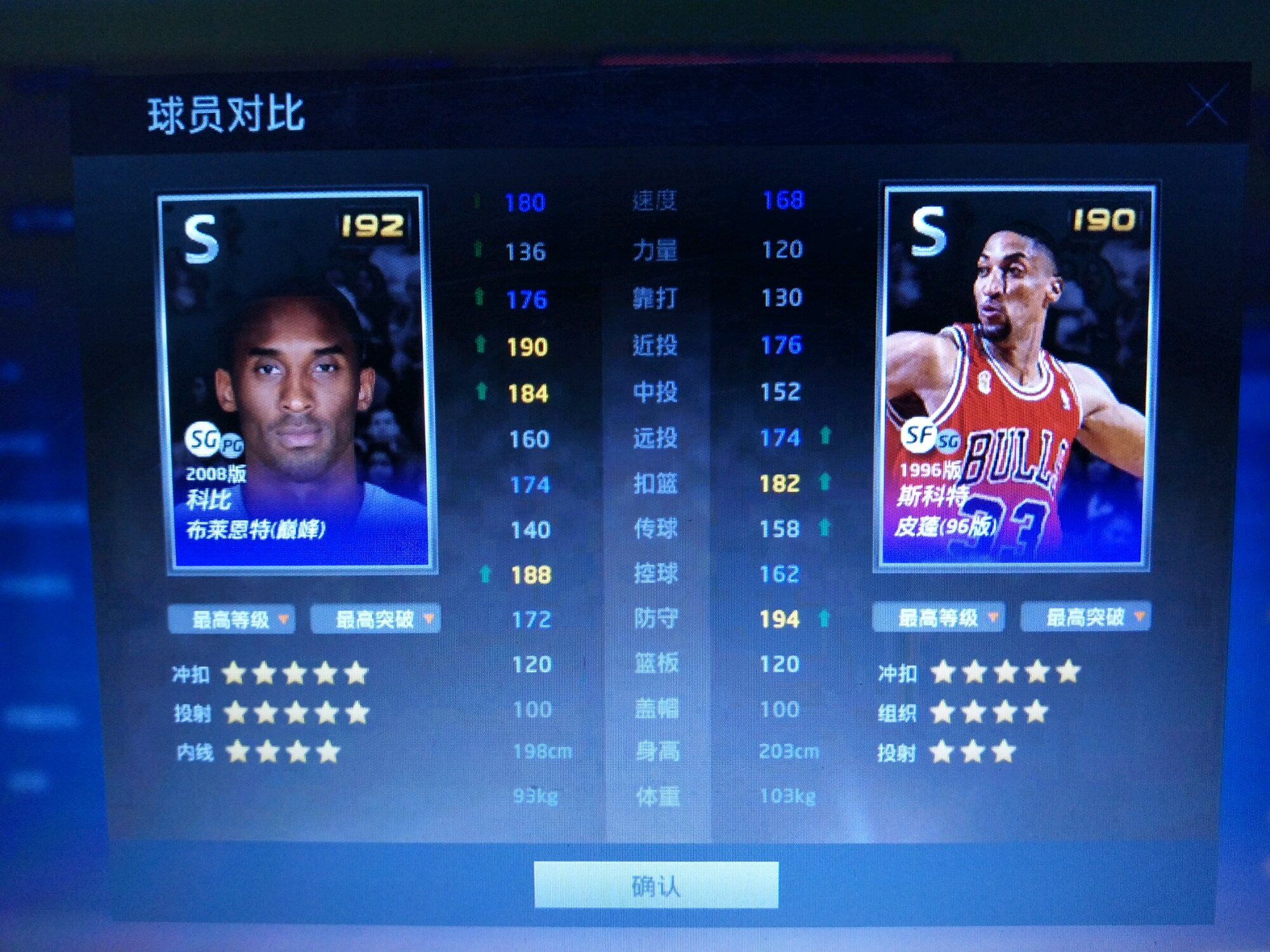 防守两差不太多,街头防守科比会好一点(因为速度)。抢断感觉差别不大。扣篮的话科比可以瞎突破扣篮,皮蓬速度不行,很难突进去。但是q战术的话,皮蓬隔扣绝对比科比硬