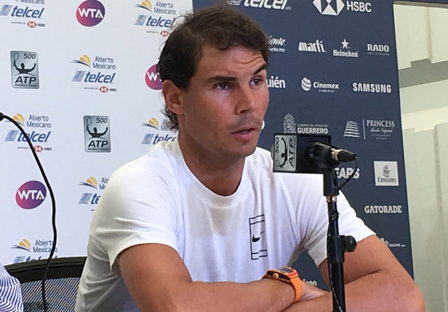 当地时间2018年2月27日,ATP墨西哥公开赛,纳达尔出席发布会宣布退赛。(图片署名: 东方IC) "