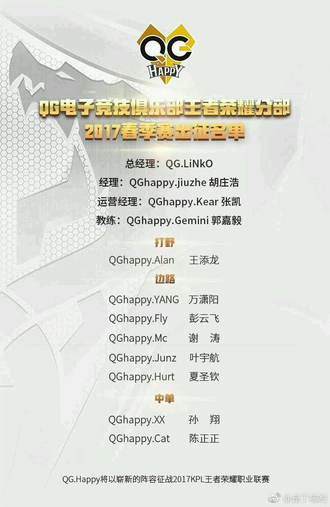 1.2017年春季赛,QG加入kpl的第一个赛季,人员名单如下