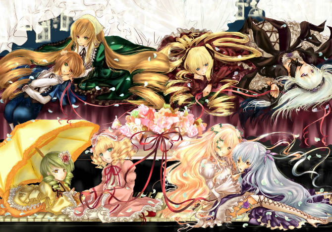 算是最初看的动漫吧,讲述了人偶师做出来的7个人偶让他们玩爱丽丝游戏的故事,蔷薇圣母是推动他们游戏进展的,其实爱丽丝游戏是另外一种含义,不剧透太多,比较喜欢真红,第三季是个大坑,严格来讲是新蔷薇少女,结尾大坑了,宁愿不出新蔷薇,坑到现在也没补,漫画版已经完结,现在又出新连载了,旧版的两部以及ova在我看来比新作好,画风上什么的都比新作好,有点虐,不过结局算好。