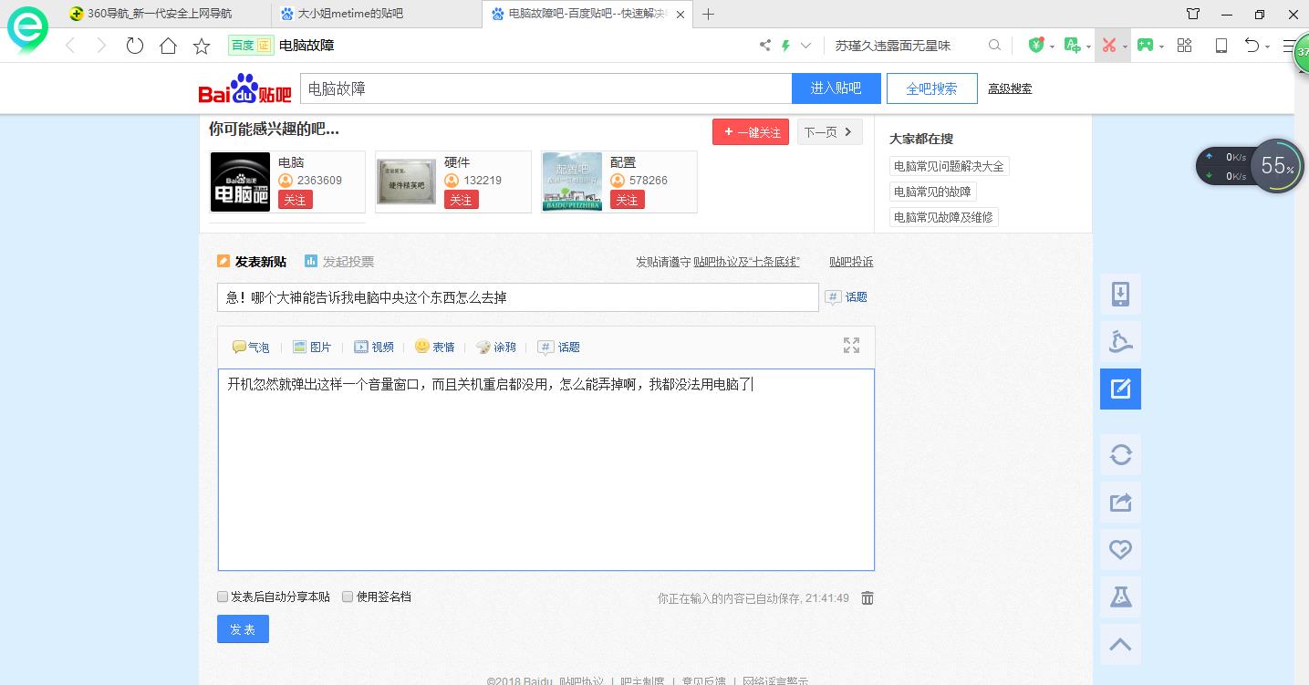 开机忽然就弹出这样一个音量窗口,而且关机重启都没用,怎么能弄掉啊,我都没法用电脑了