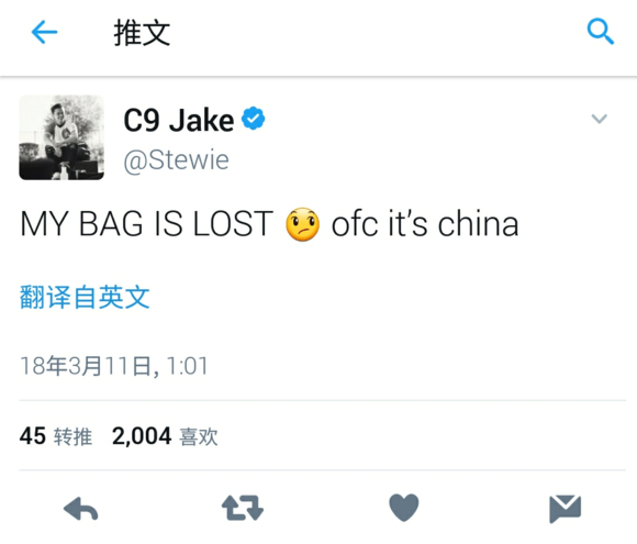 以前挺喜欢2K,打法很皮。但是因为2K在中国丢了包,直接地图炮。这次ofc it's china,太**。,地域攻击还有什么可解释的。别再说什么2K中国人?2K香港人?人家打心眼里就鄙视中国,一些个别粉丝别学韩国人不要脸去舔。再看看他后面说的那些话。全世界去过很多地方,就中国才会丢包。人家就是看不起你们,还一个劲去说锤子~ 直接点,2K拜拜,C9拜拜!