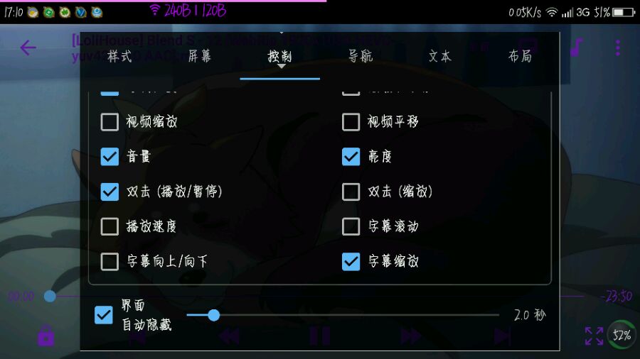 谢谢回复,我试过了兼容木有效果,平时也是点击屏幕就会都出现,但几秒后自己可以隐藏虚拟按键栏,却一直不隐藏顶部状态栏...而手机自带的播放器可以全隐藏,但选不了音轨和字幕