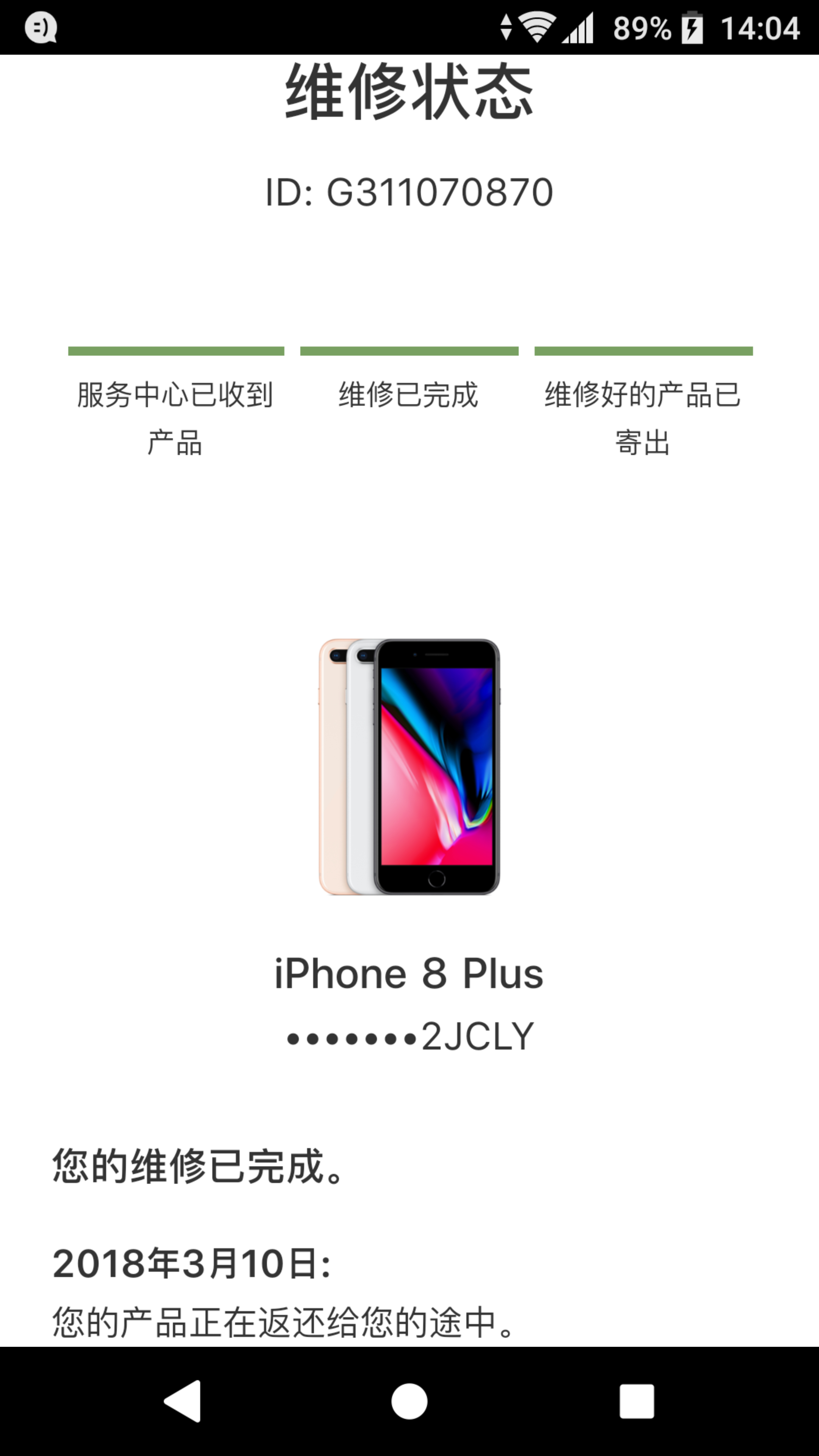 显示:维修好的产品已寄出,后几天到授权售后?三天还是四天?怎么查询工厂具体修了替换了那些部件?10号变态成为:维修好的产品已寄出,今天12号。13号会到么。。今天是没到。。