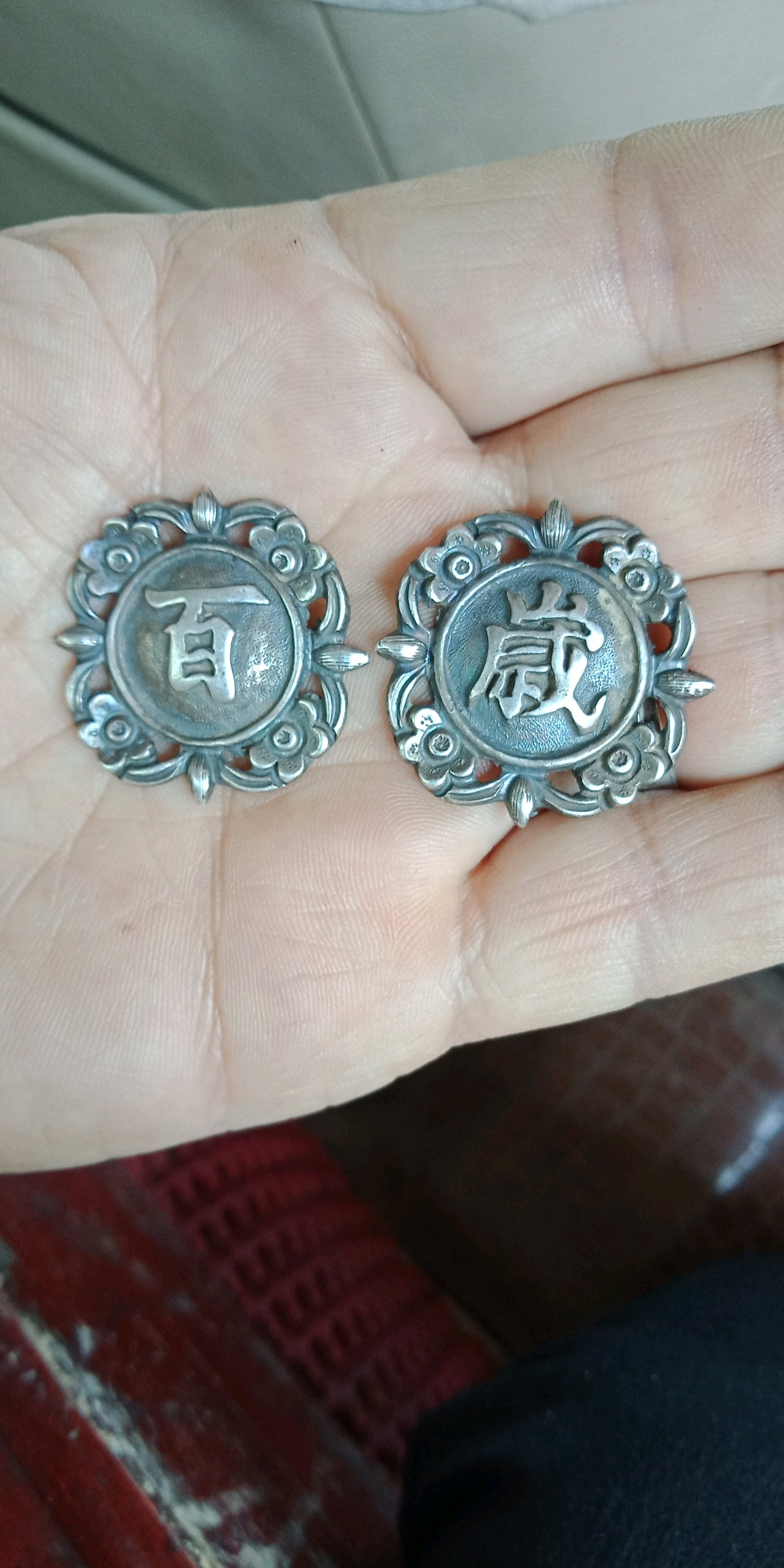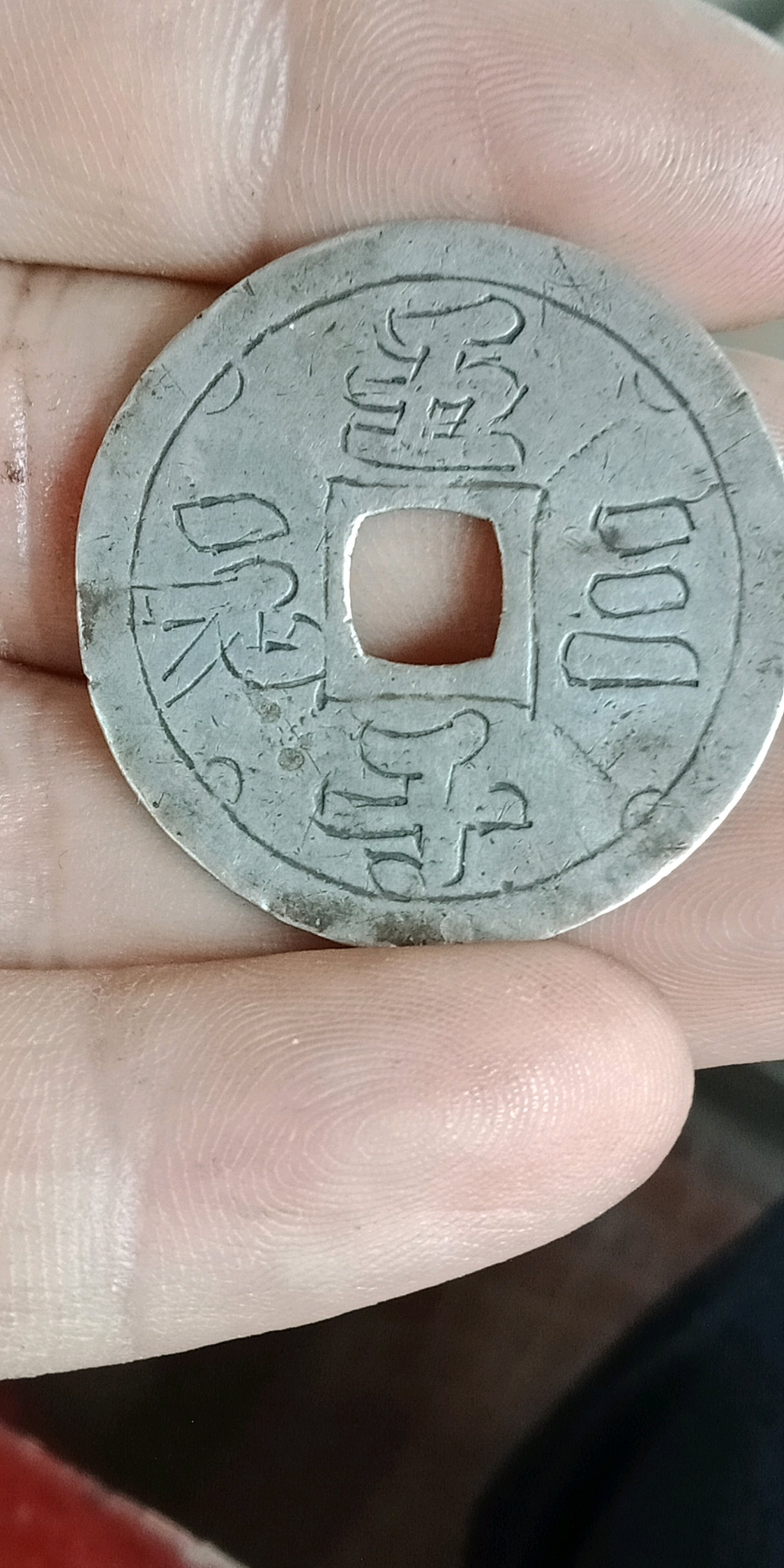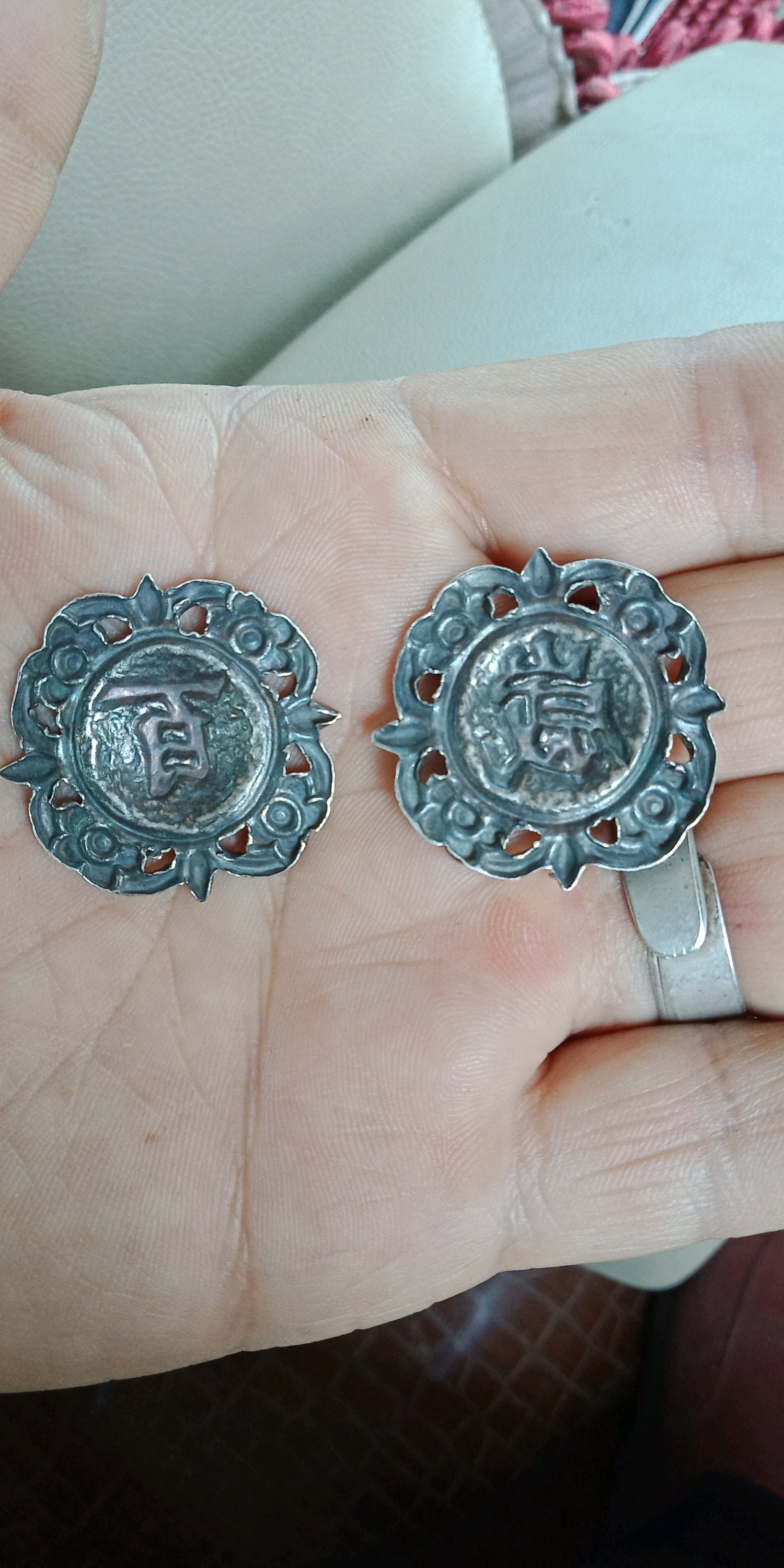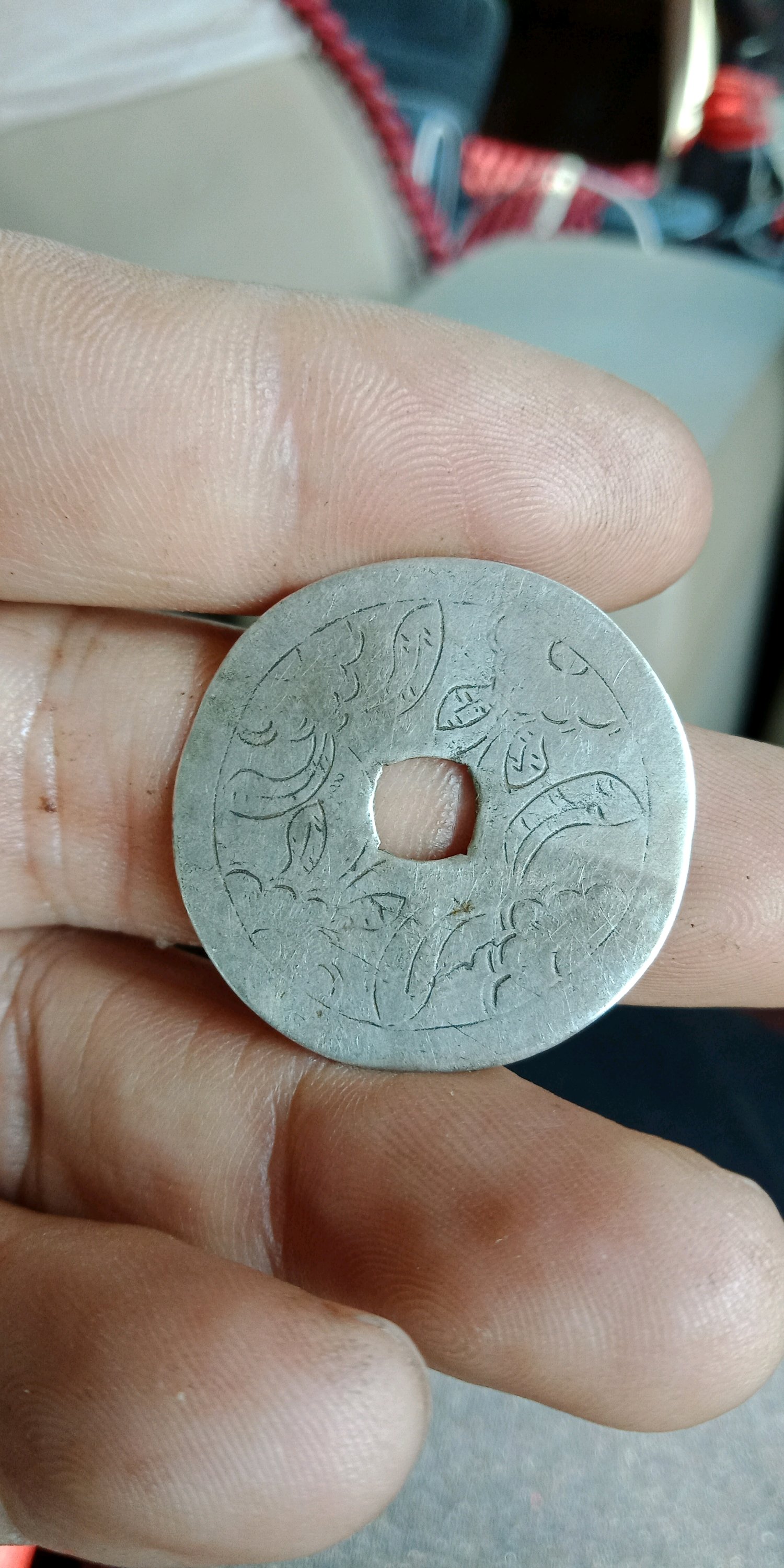 银花一枚。直径较大厚重。缺点磨损也较大价48