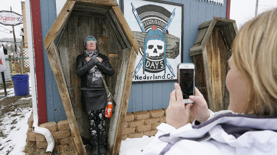 当地时间2018年3月10日,美国科罗拉多州尼德兰,民众庆祝年度“冰冻死人节”,该节日为了纪念1994年发现Bredo Morstol尸体。