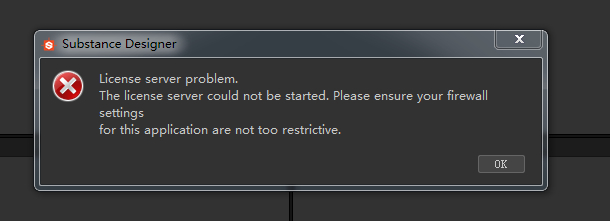 win7系统下,Substance Designer断网安装破解以后打开还是不能用,提示是防火墙设置问题,提示如下图: