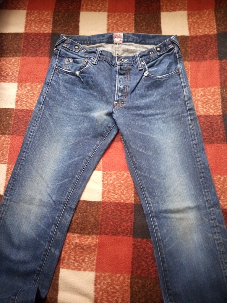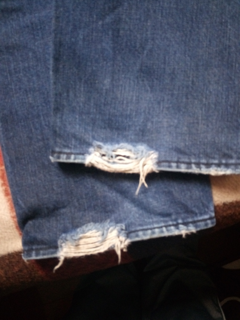定义8成新,没瑕疵。裤脚的破洞是本来就有。下过水。
