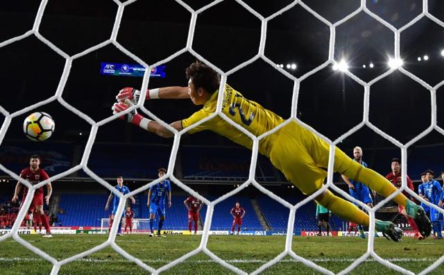当地时间2018年3月13日,韩国蔚山,2018亚冠小组赛,蔚山现代0-1上海上港。吴承训扑救(图片来自东方IC)