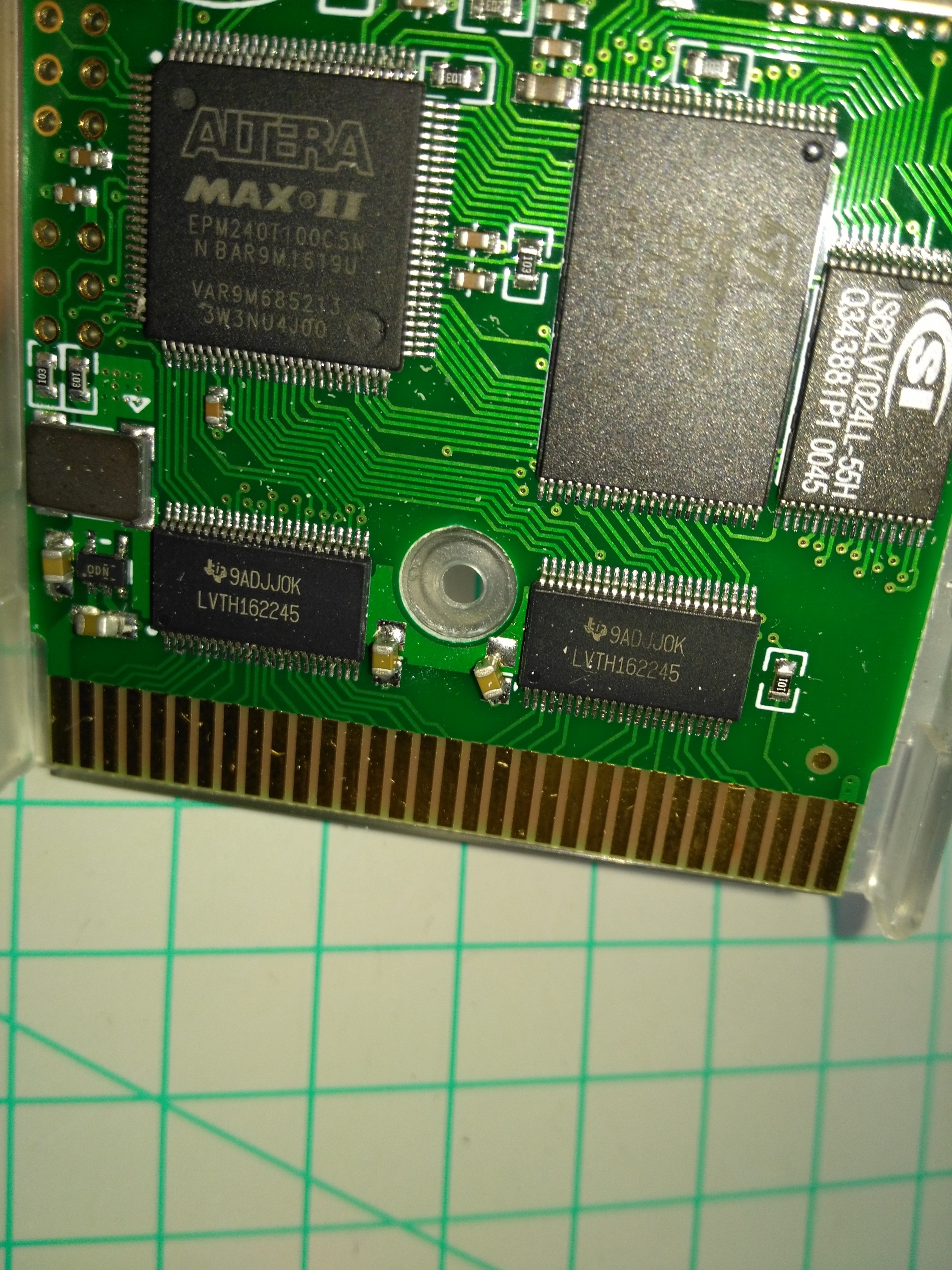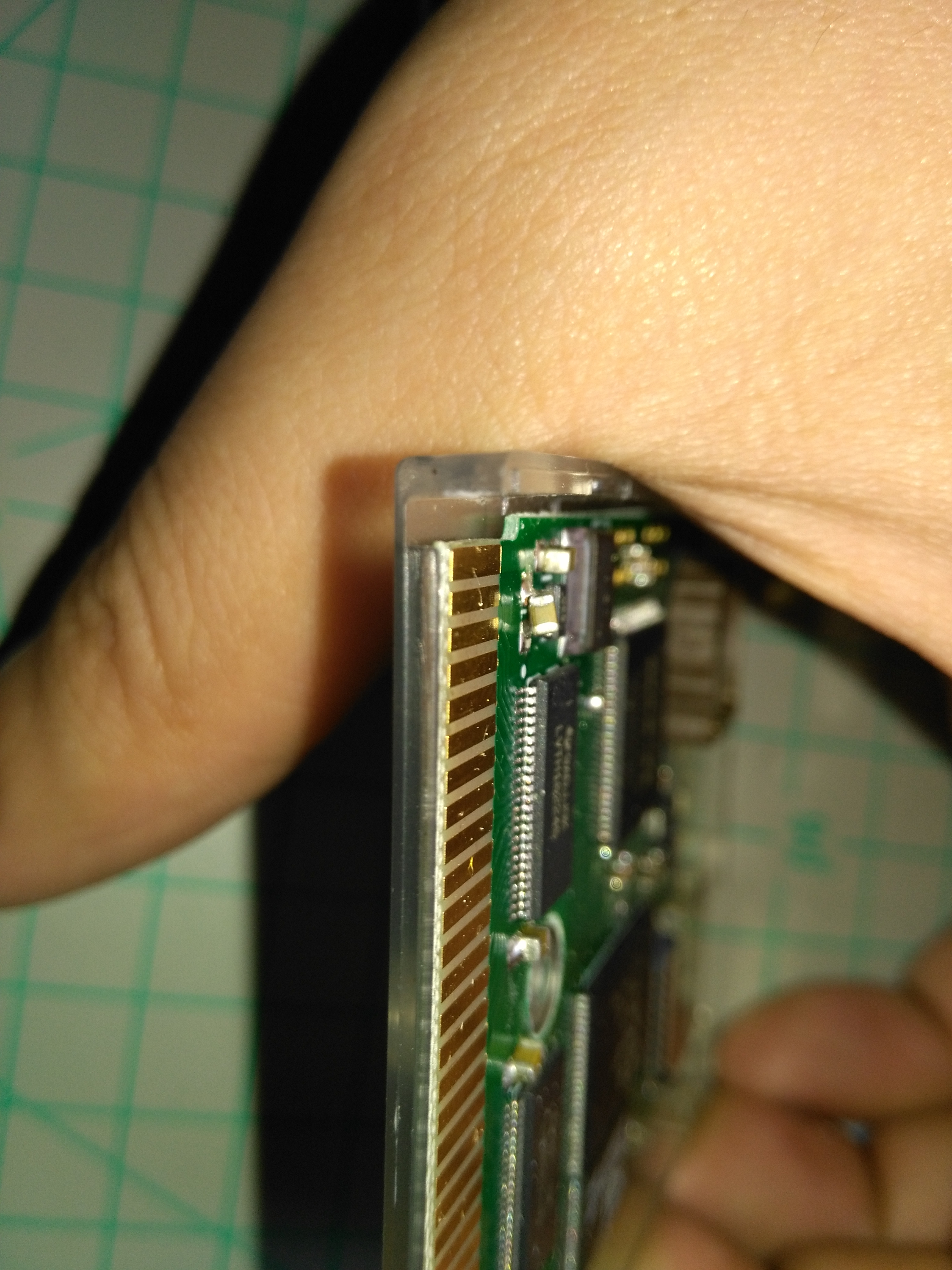 手工赶工的痕迹明显啊,歪的还脱焊,哈哈哈,卡壳很软,插口弯的,卡壳有个卡榫顶住了芯片得削一下,螺丝居然是空心的?用铁皮拧的?明天回家插机器看看能亮不,不能用热风机吹正,再不行我都懒得换货了,第一次买玩几次就烧不进游戏了,这张是店家给换新的
