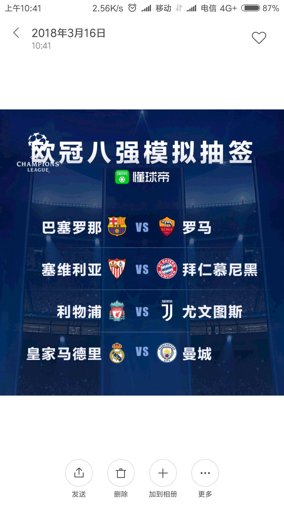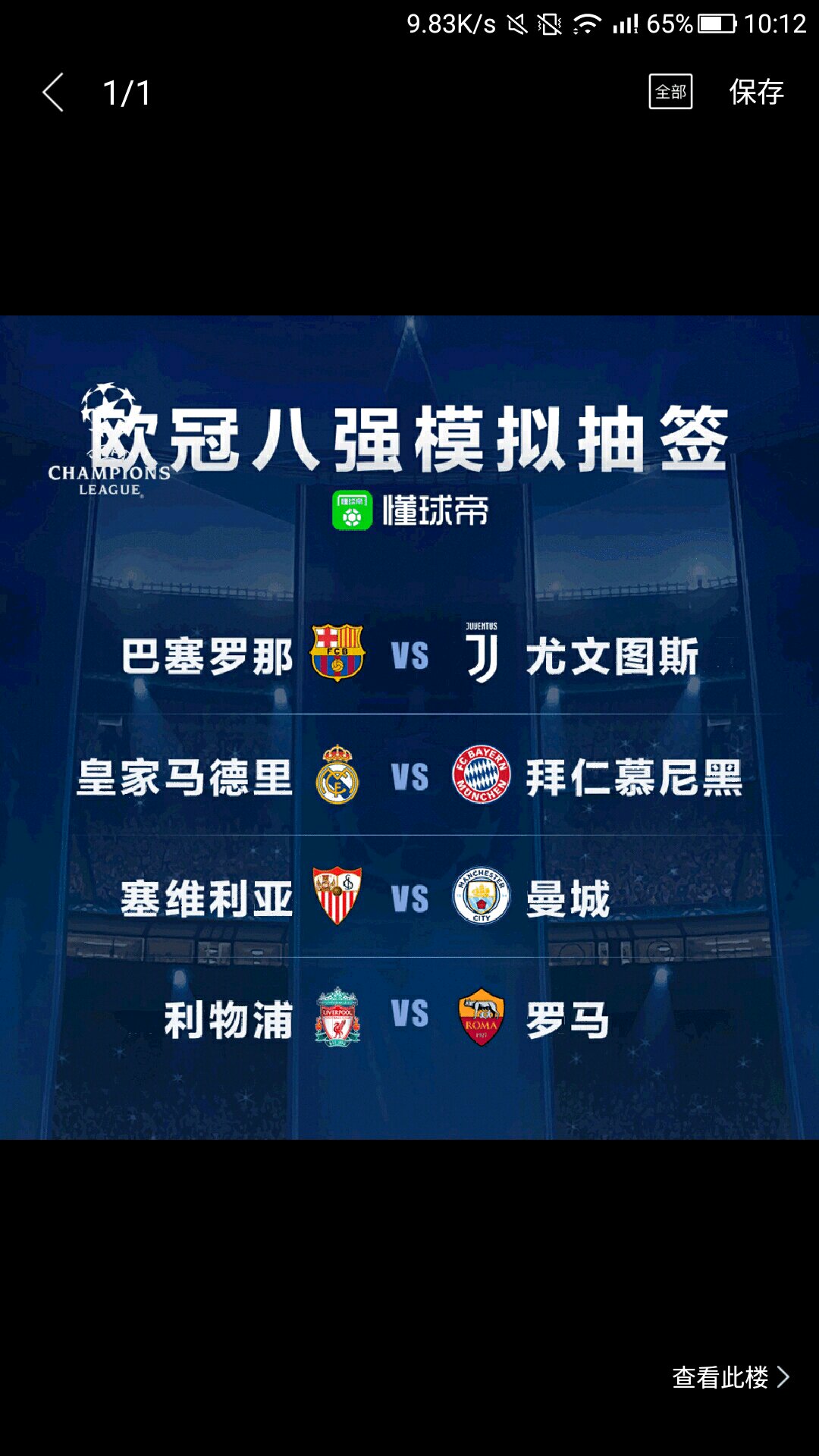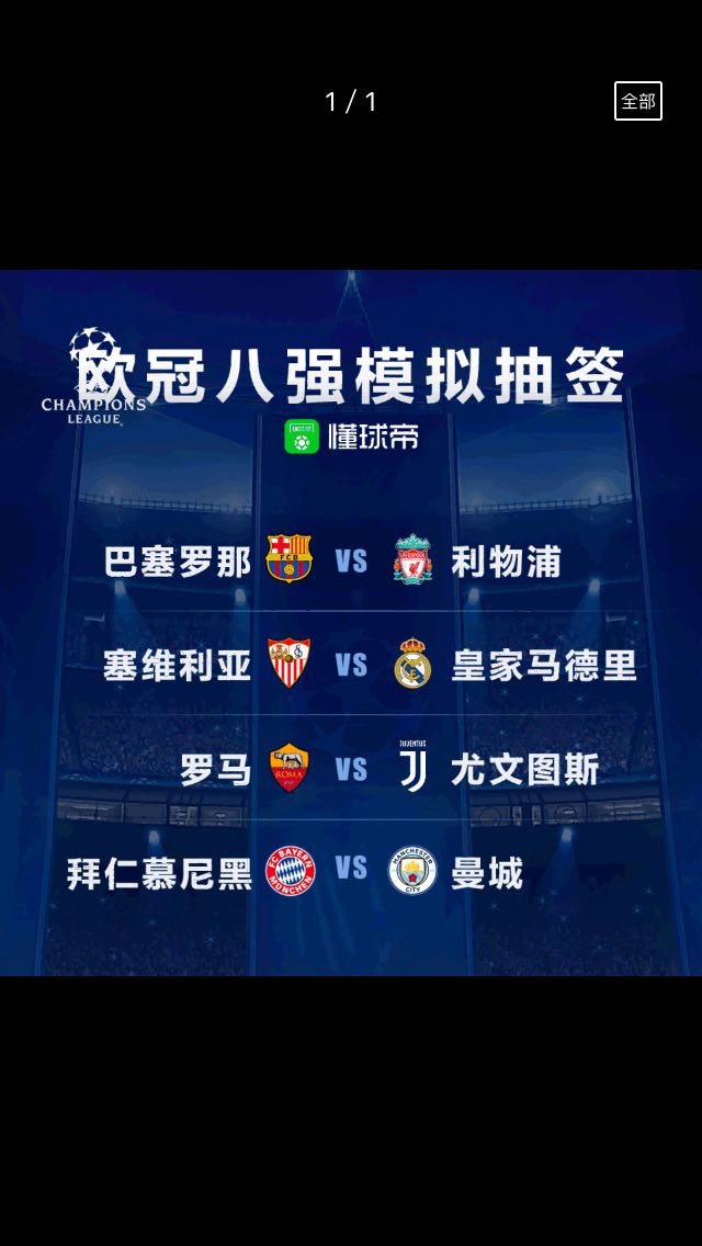 欧冠八强抽签结果