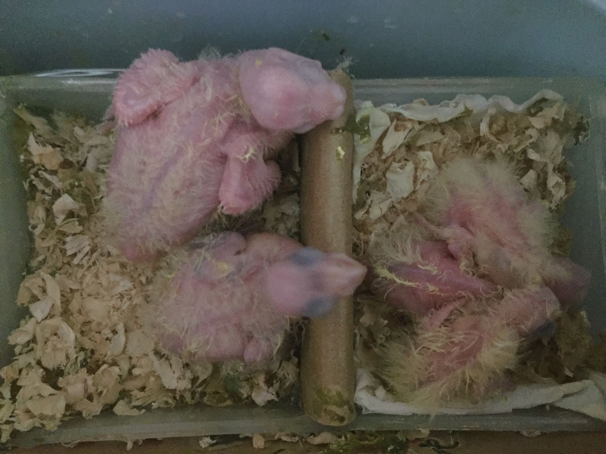 目前老大6天,老二五天,老四两天,老五一天,老六正在破壳,老三由于我手贱放回玄凤繁殖箱被咬成肉泥