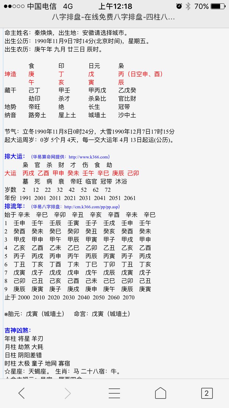 八字婚姻命犯伤官,大运枭神过渡正印目前婚姻还算好,感情淡薄,未来趋势不好! 日主逢寡宿,无事业稳定工作者!