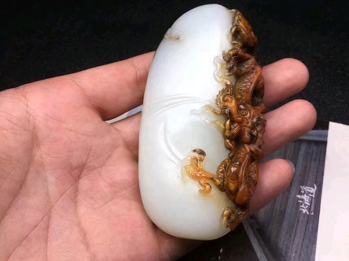 精品和田玉,龙行天下手把件,质地温润细腻,油性一流,苏工精雕,线条流畅,规格89×4mm重165克