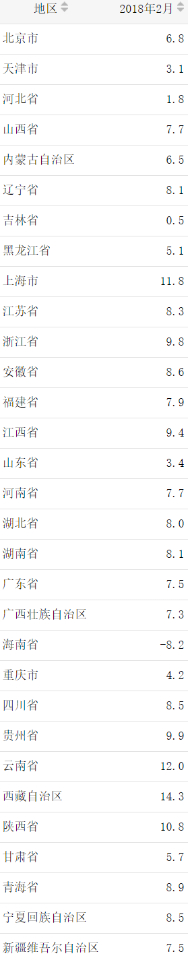 18年前二月,各省市规上工业增加值实际增速