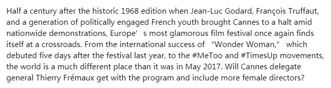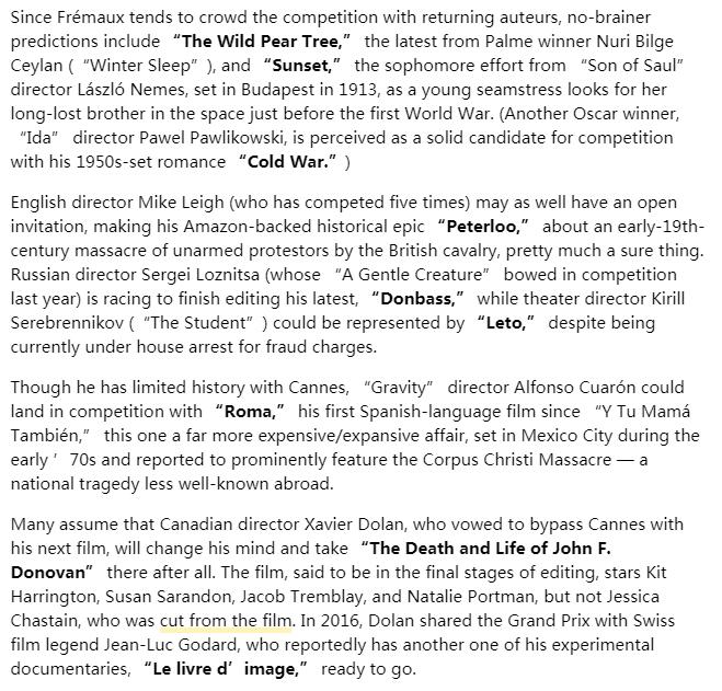 入围影片将于4.12日宣布,预计老吉和凤凰的新片TSB也将入围