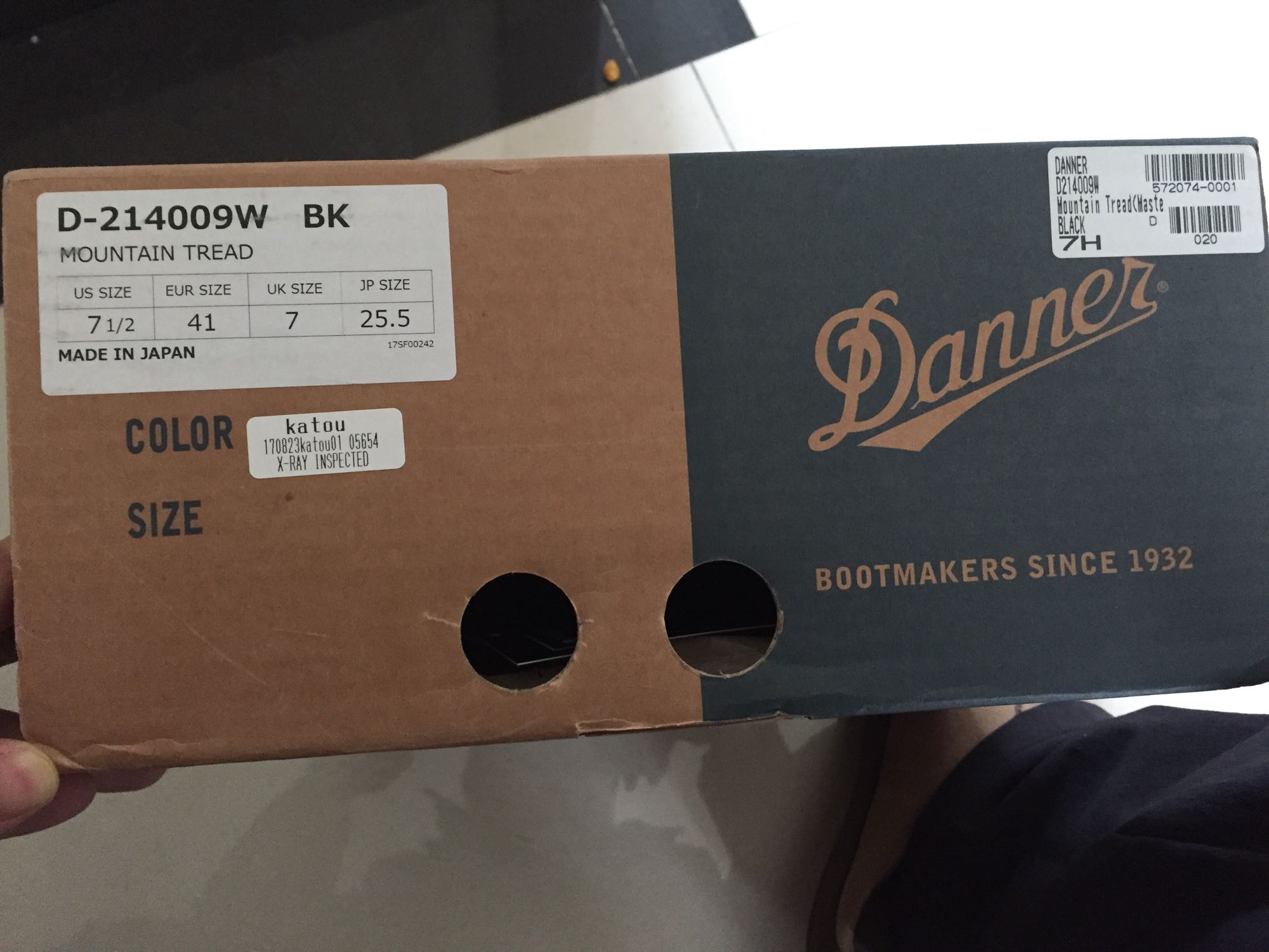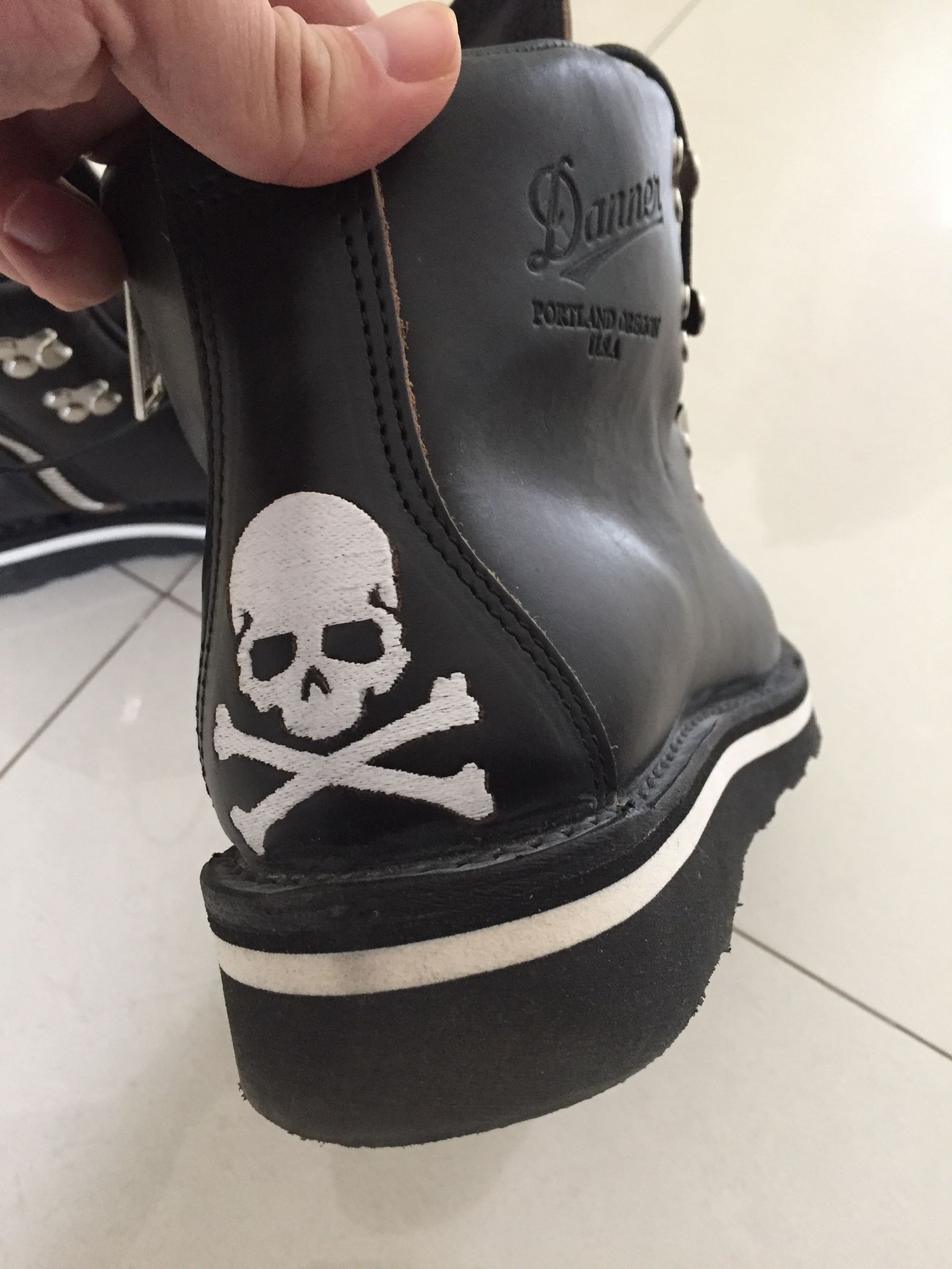 本人第一双danner, US7.5, 购自mastermind world 在线商城。一直特别喜欢danner 和 大骷髅这两个牌子,发现这个咬咬牙就入了。