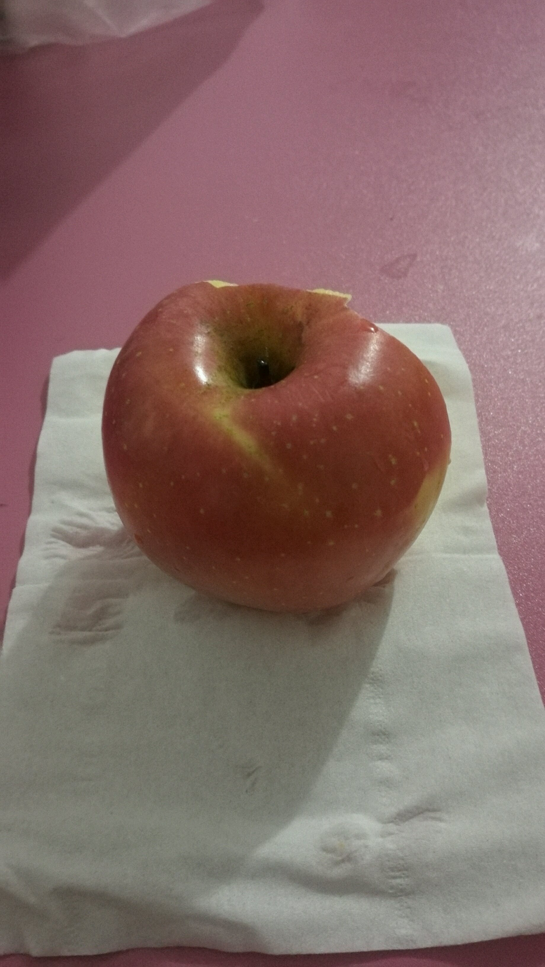 坐在饭桌前,啃个苹果,假装吃饱的样子哄骗自己