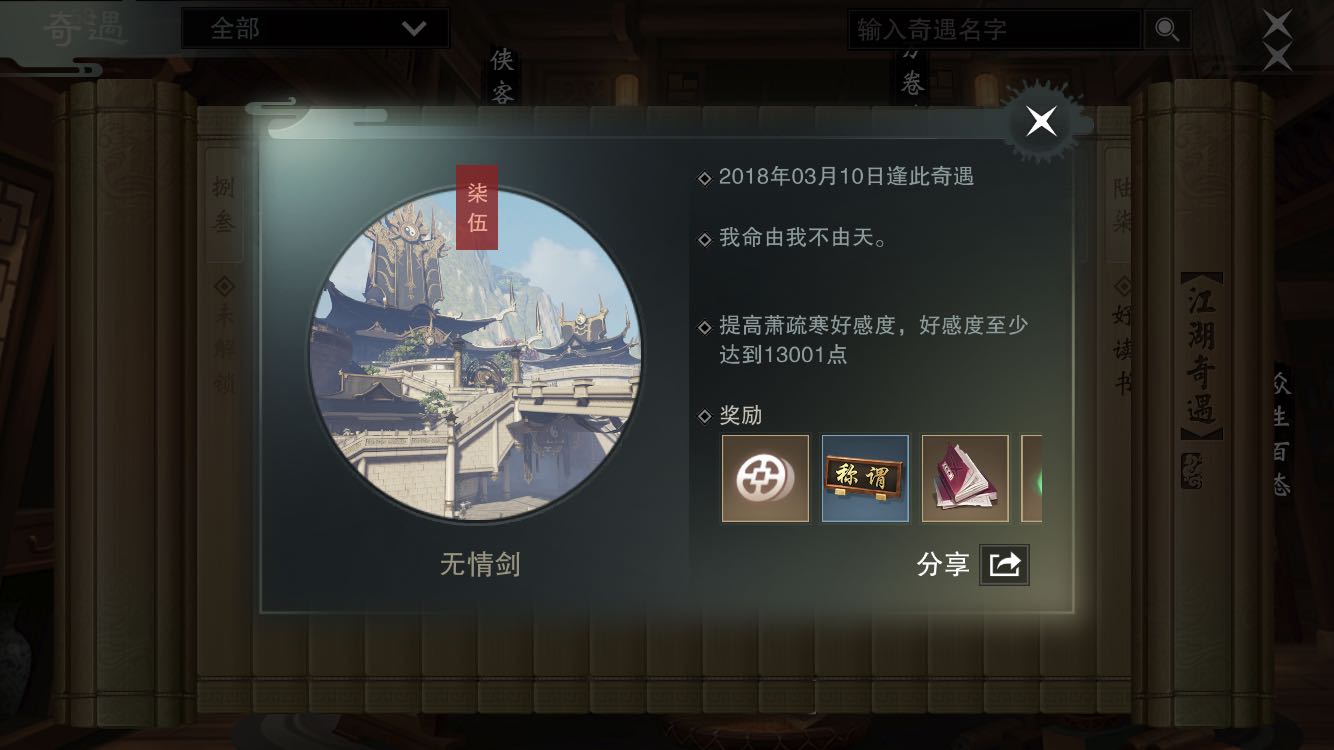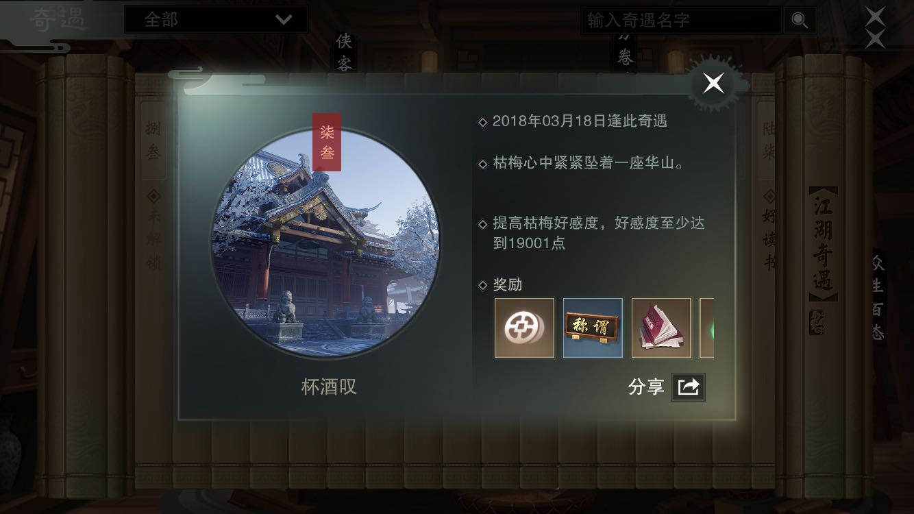 回复 涴风 :奇遇条件写的是提升好感有几率触发,但是没说多少,已知的是这么多