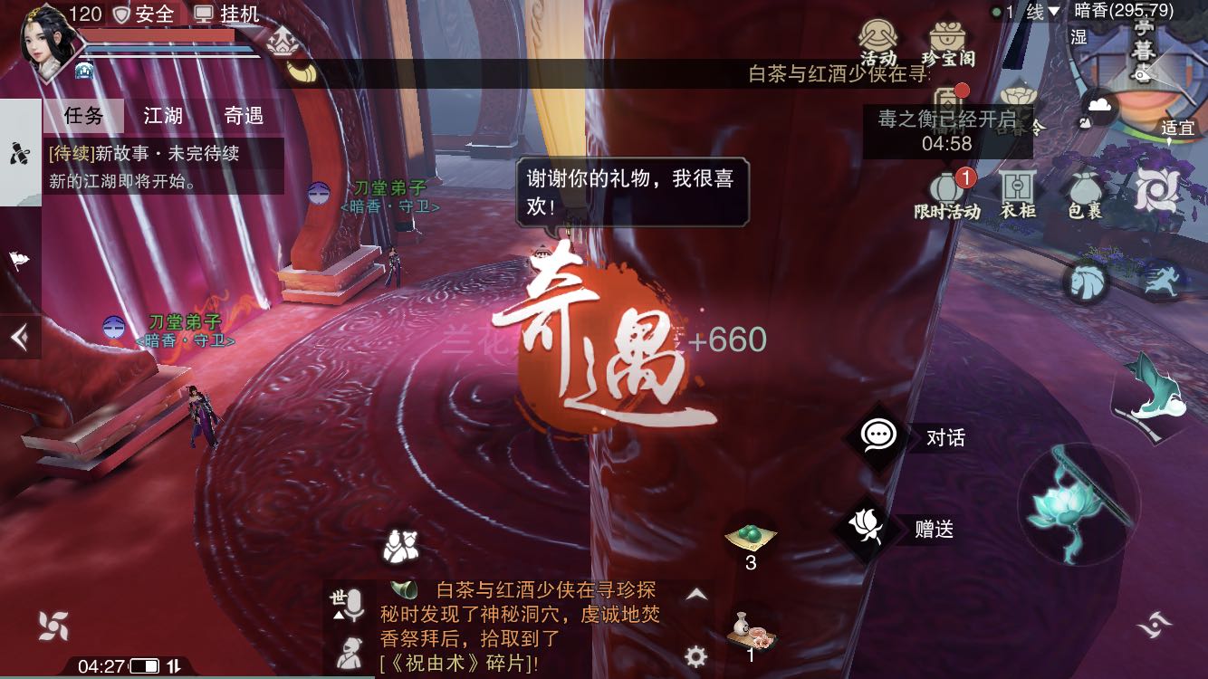出了奇遇我就不刷好感度了,又不送东西给我,听他们说方思明也要求五万一好感度